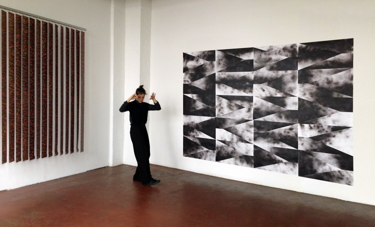 papier peint, peinture noir, chaque format 180 x 270 cm, vue de l’exposition «Intransigeantes», exposition duo avec Ode Bertrand à la galerie Modulab, Metz
