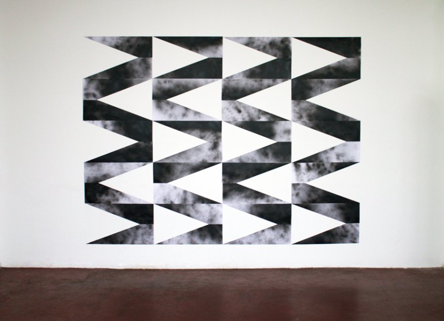 papier peint, peinture noir, format de l’installation mural 280 x 210 cm, vue de l’exposition «M/C/I», Treptown atelier 4, Berlin, Allemagne