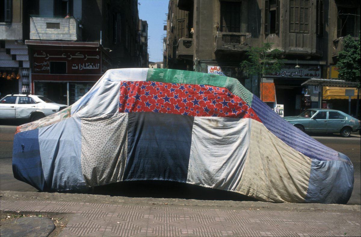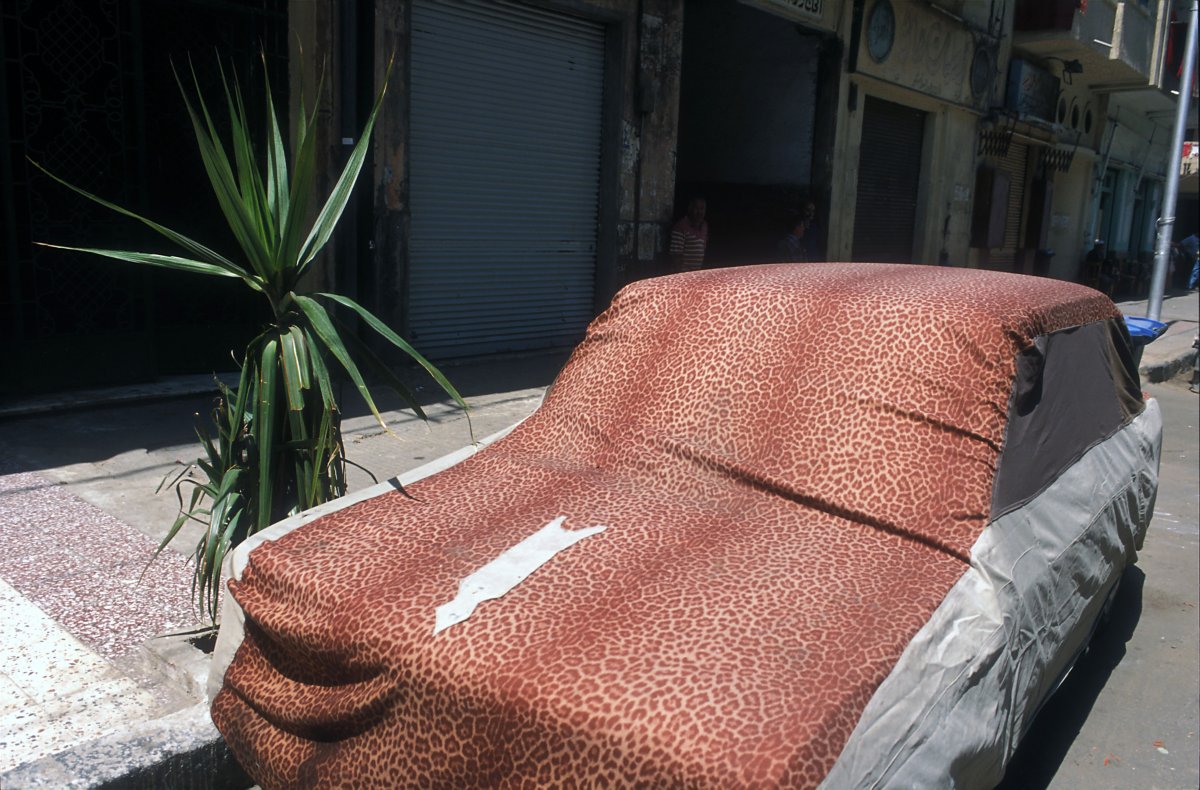 Aussi je photographie la voiture bâchée ayant un sens dans sa ville. J’évite de l’isoler de son cadre. Je veux jouer avec le fond, l’environnement, le hasard. Sans le vouloir, et sans le savoir, les propriétaires de ces véhicules couverts pratiquent une forme d’art urbain, un art brut et spontané. J’ai envie de me faire simple témoin de leur œuvre, de montrer une Egypte simple et rieuse, la vie colorée et artistique de la rue au travers de ces voitures insolites dont on ignore la marque et la carrosserie.