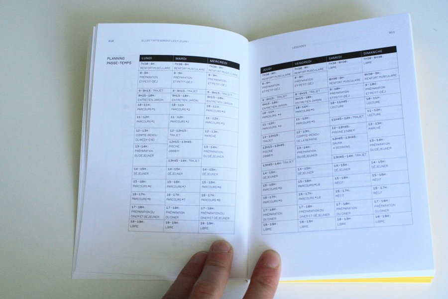 Au printemps 2013, à Malakoff pendant deux mois, 5 jours par semaine, habillée en civile, j’assure une maintenance. Le planning à la semaine appelé Manifestations solitaires est focalisé sur des activités d’occupation. L’action consiste principalement à entretenir 85 massifs de fleurs de la commune, à raison de 17 par jour. Également à aller dans un jardin partagé où je m’occupe de terrains collectifs mais aussi à la piscine, au marché… Ces activités de loisir, réunies dans un programme dense et structuré comme un emploi du temps de salarié, je m’emploie à les exécuter avec zèle. Seules les rencontres m’en distraient. Les réactions qu’elles engendrent sont mémorisées et consignées chaque midi et chaque soir.