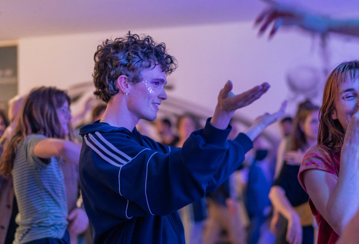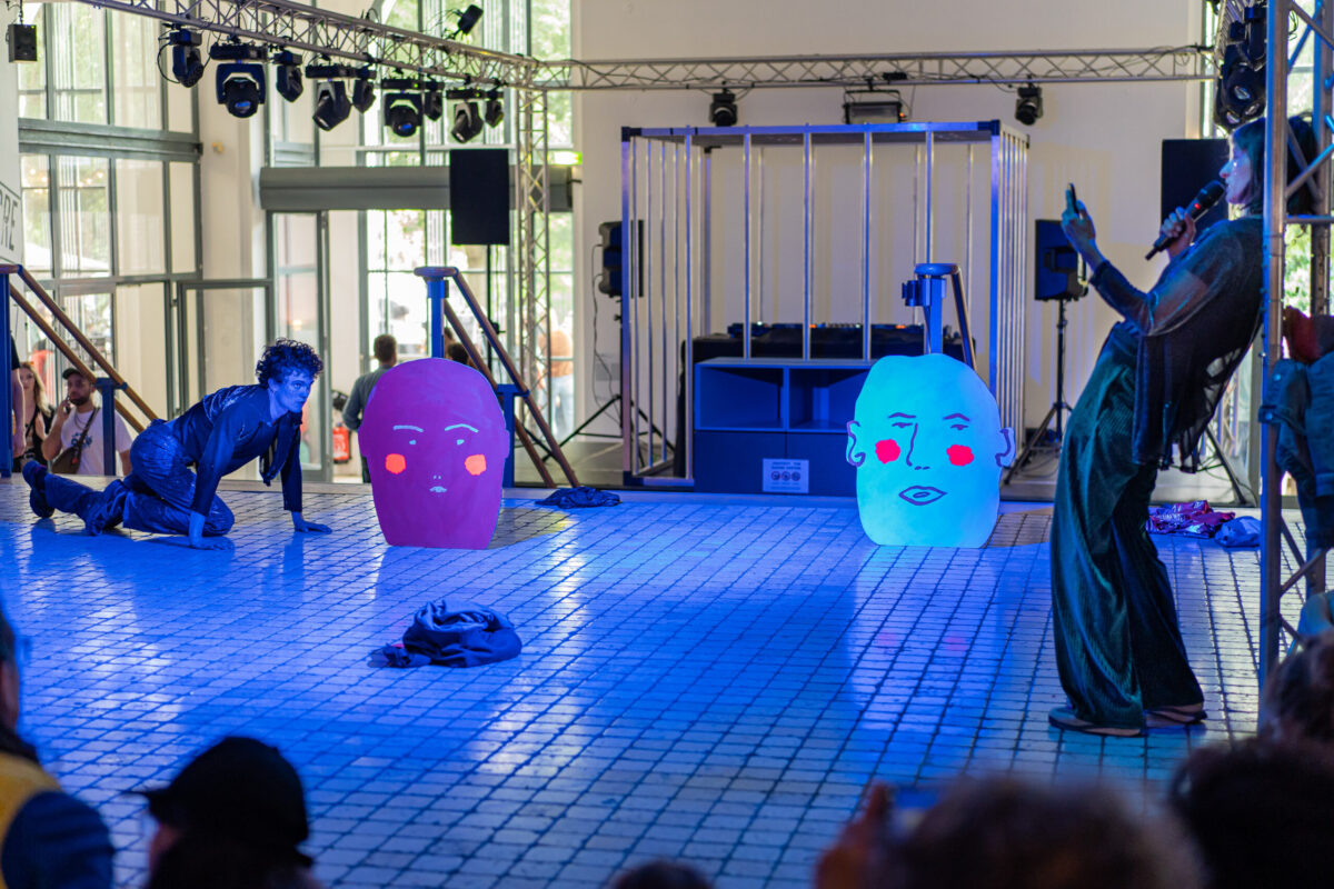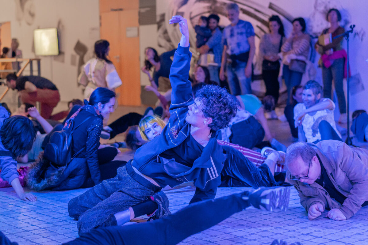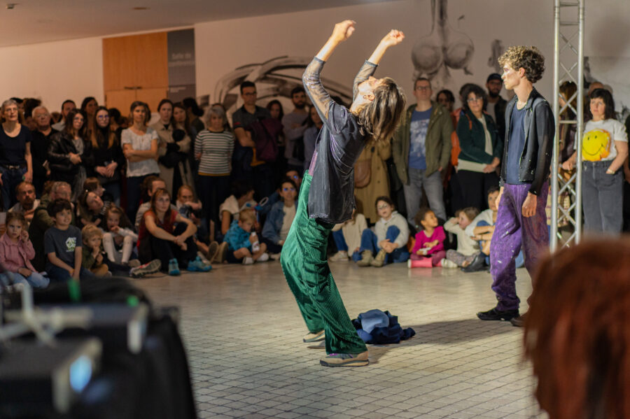 Encore une fois nous emmène dans l’univers d’une fête où différents personnages se retrouvent pour danser, expulser, lâcher, se lâcher. La performance est construite comme un dialogue dans lequel se mêlent désirs et injonctions, absurdité et sensualité, attente et impatience. Les personnages abordent la fête tant comme exutoire que comme moyen de se lier les un.es aux autres. Au rythme des lectures et des danses, des basses lointaines et des tubes des années 2000, la performance questionne notre rapport à la fête tout en invitant les spectateur.ice.s à prendre part aux festivités.