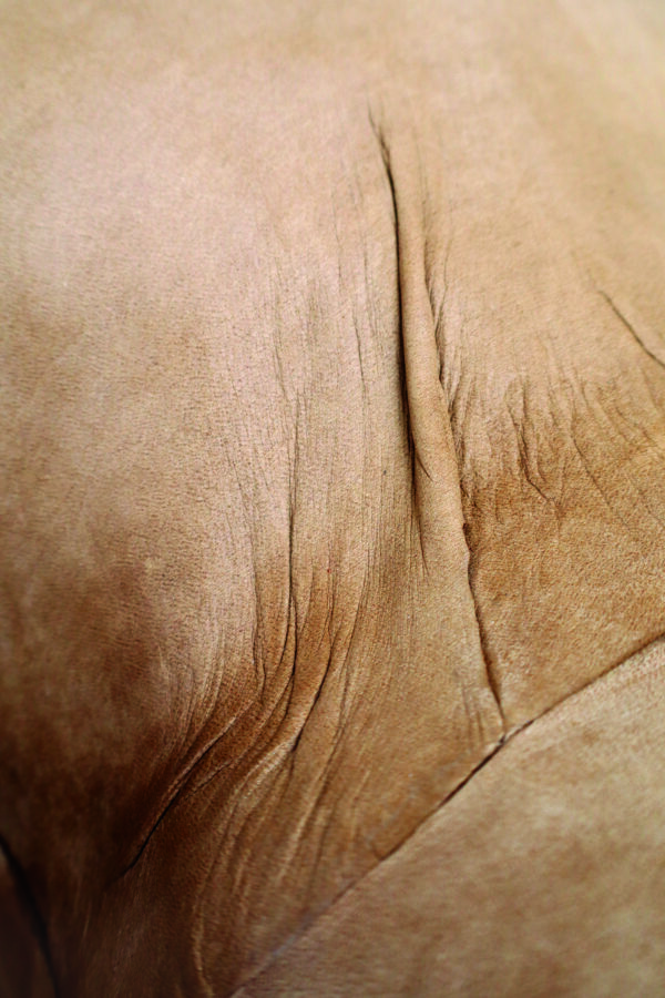 Anne Lebréquer, «Entendez-vous leur cataclop se désunir ?», 2025, acier, cuir, béton de ciment, plâtre, photographie : © Hélène Annereau-Barnay