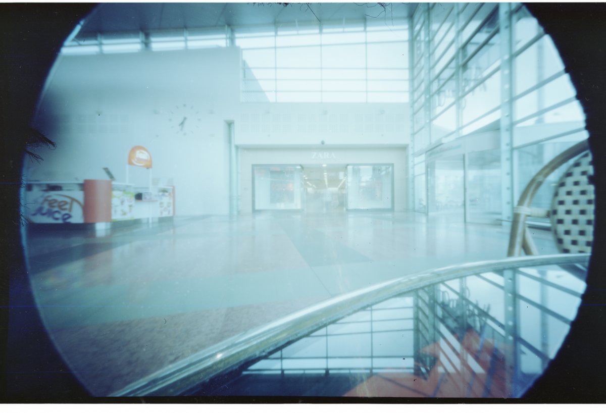 Sténopés au format 6X9 pris dans des surfaces commerciales les premiers jours des soldes. La foule s’étale en un voile vaporeux sur la surface sensible de la pellicule.