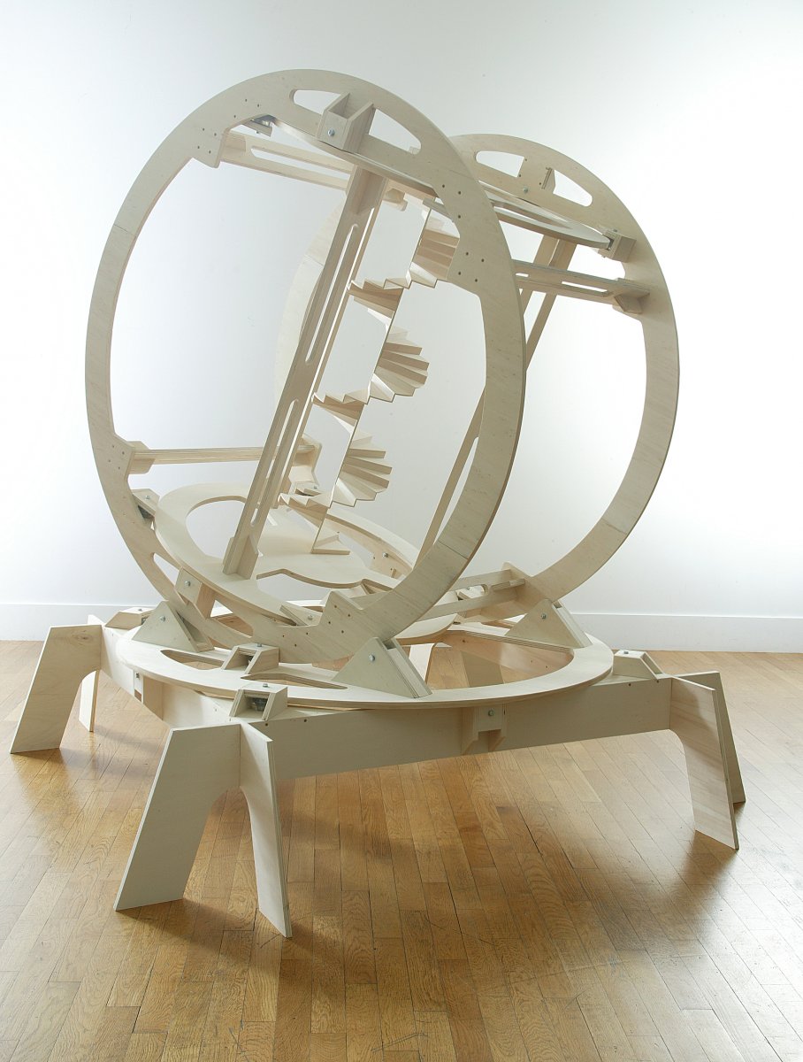 VM- Oui, en effet je suis prêt à ré-exploiter certains aspects d’une pièce dans un contexte tout autre, lorsque ceux ci m’intéressent mais il ne s’agit pas d’auto-citation. Je consacre une grande partie de mes recherches à l’élaboration de solutions et dispositifs techniques et à la découverte d’éléments de fabrication. De ce fait, il m’arrive de trouver un dispositif, qui intervenant de façon secondaire ou annexe dans une pièce, retienne particulièrement mon attention. C’est souvent en construisant une pièce que j’entrevois certains éléments pouvant donner naissance à un nouveau travail. Je ré-utilise alors ce dispositif, cet élément pour une nouvelle pièce au sein de laquelle il tiendra une place centrale.