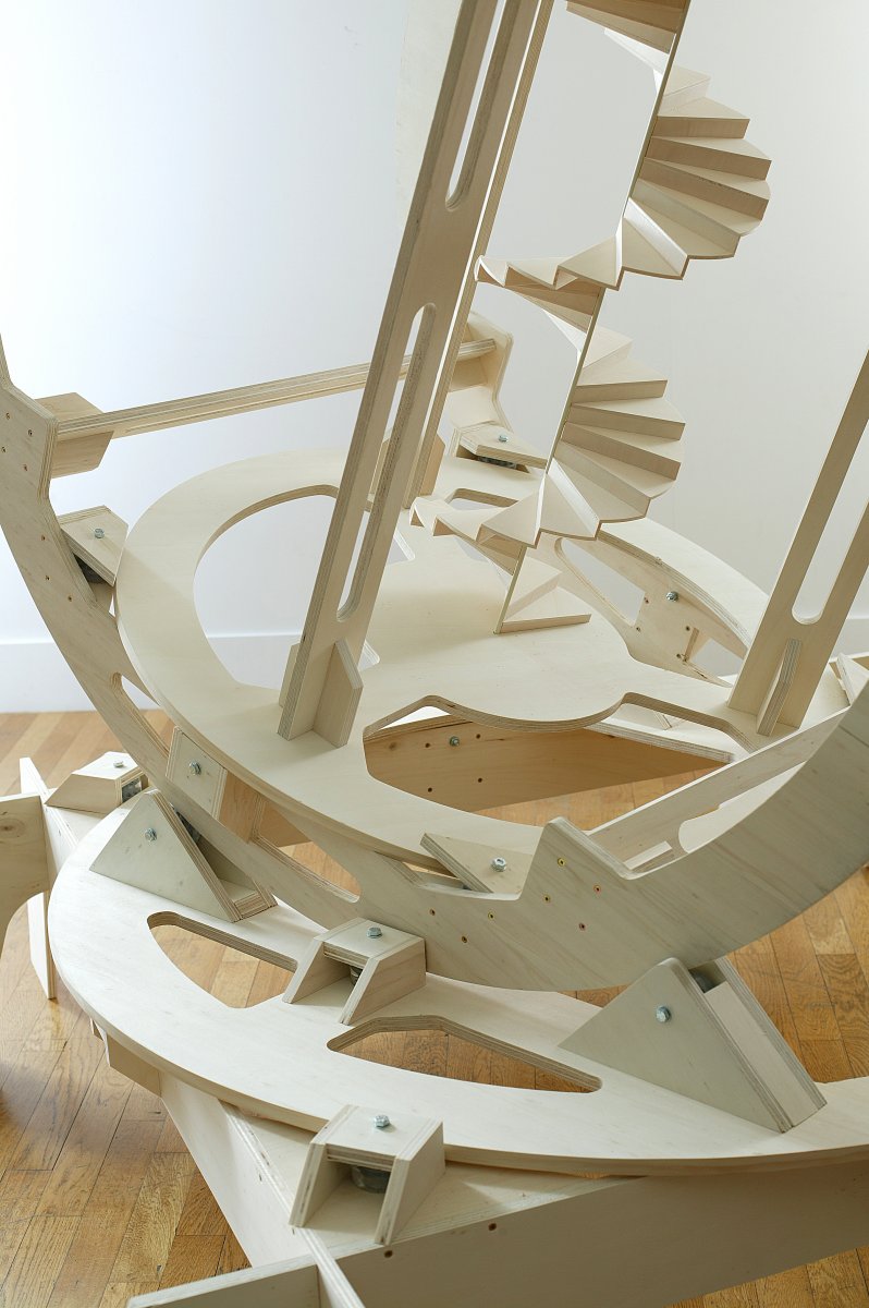 VM- Dans les premières pièces, il y avait souvent un jeu de miroirs, une relation de mise en abîme, comme présenter la maquette de mon atelier dans mon atelier. Il s’agissait, en fait, de la matérialisation de ma vision personnelle de tel ou tel espace. J’essayais d’établir une forme de concurrence entre l’espace réel et la représentation mentale que je pouvais en avoir, de faire se confronter deux types d’architectures, celle d’un lieu et celle d’un paysage mental. Mes pièces récentes sont moins intrinsèquement liées au lieu, je peux toujours les imaginer ailleurs.