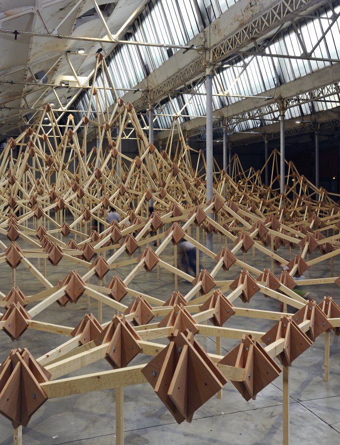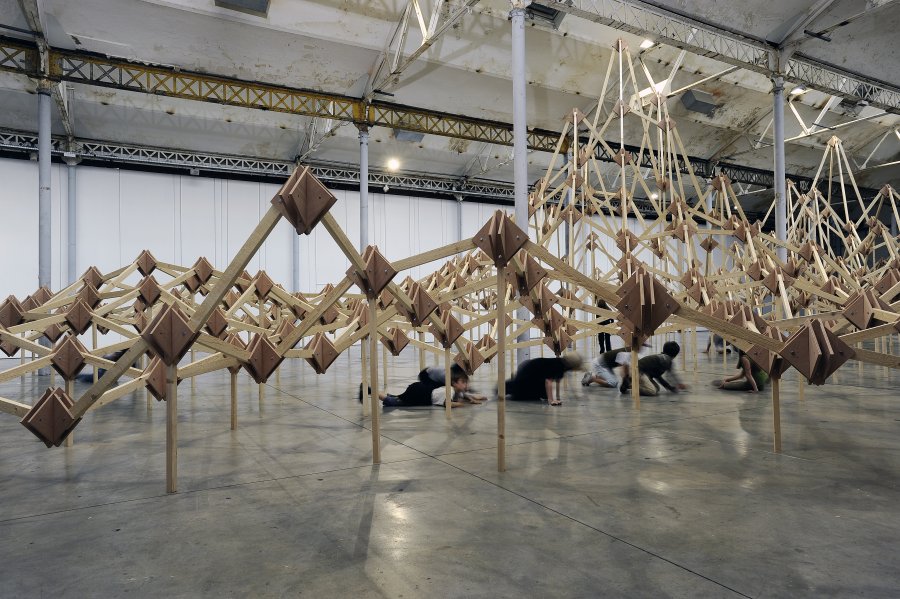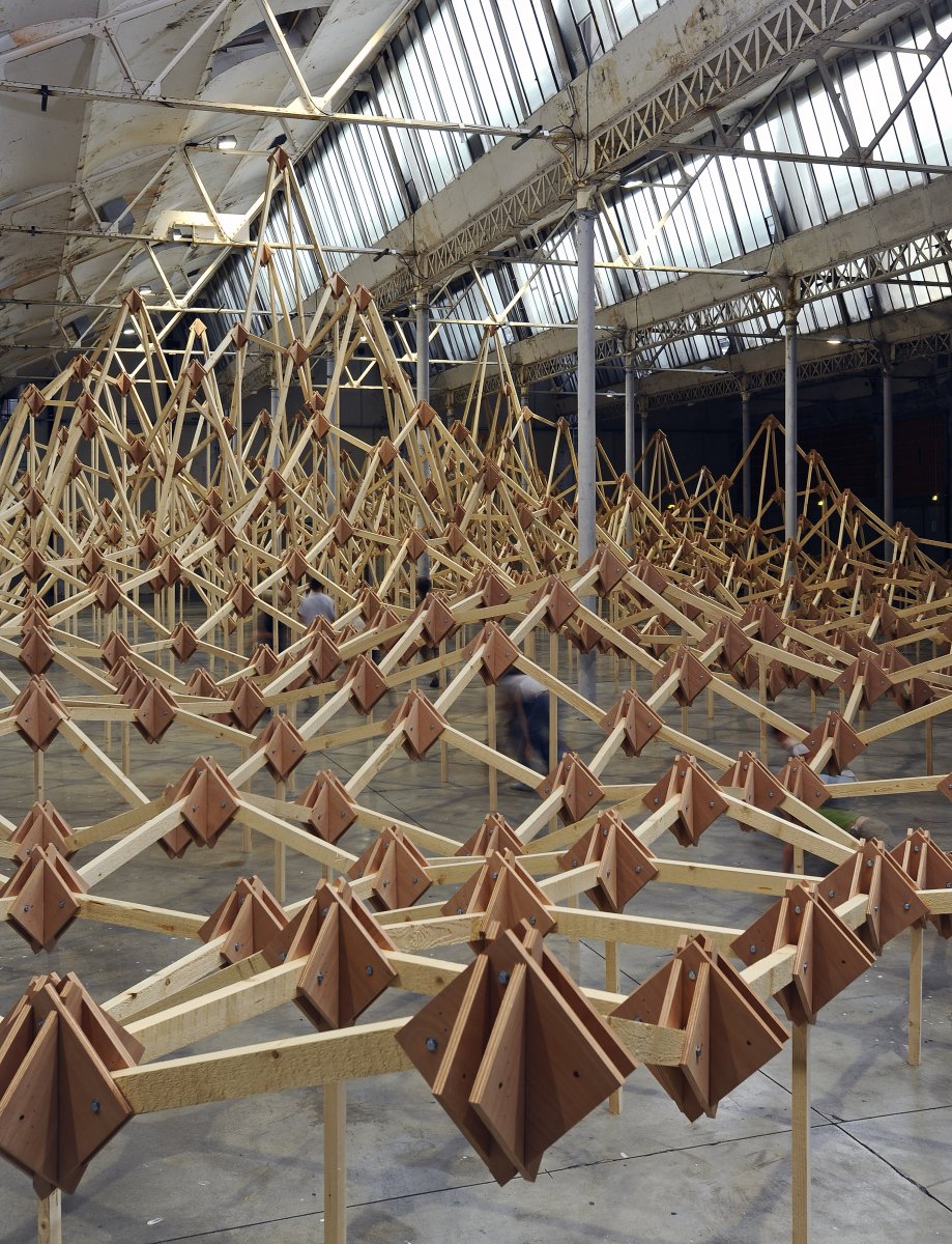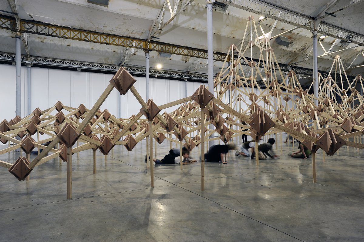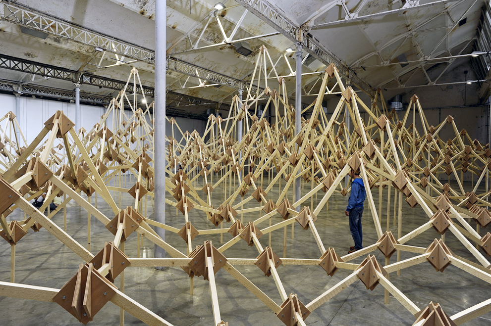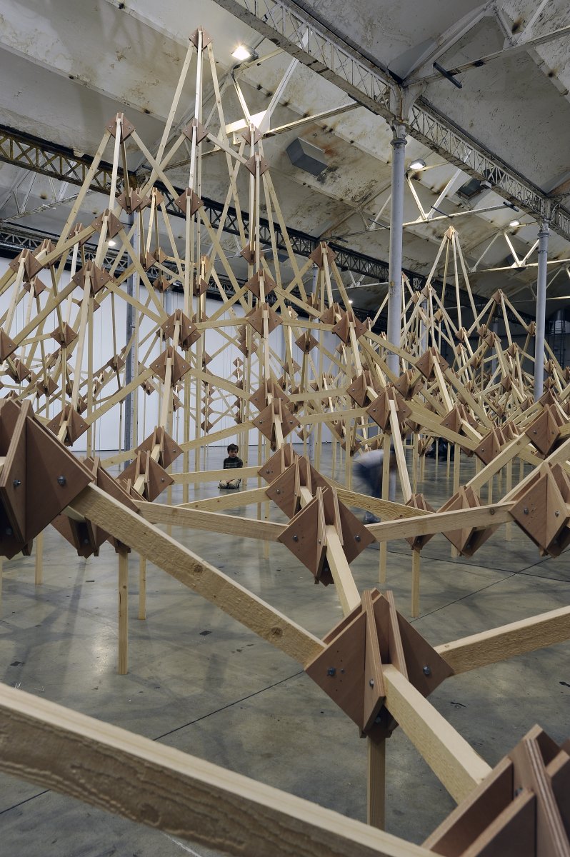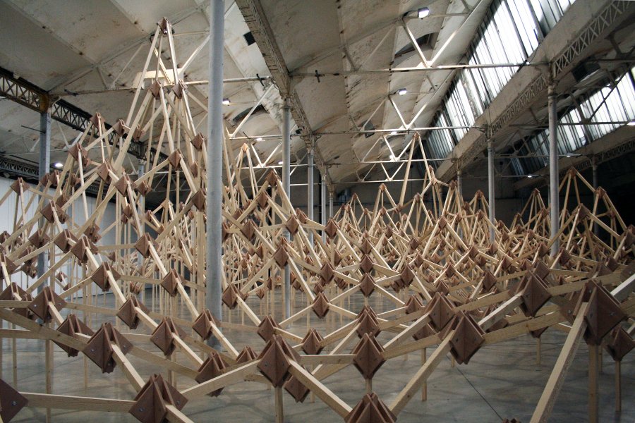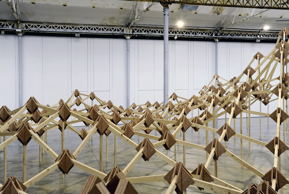 Certaines installations s’affranchissent davantage de la référence aux logiciels de vectorisation. Les images qu’elles font surgir demeurent indécises, à l’exemple de ce paysage de papier où le relief montagneux rejoint la surface de la mer, fragmentée à I’ infini (Sans titre 2006, installation in situ à la chapelle du Bélian, où Vincent Mauger emplit I’ espace de feuilles A3 froissées en boule); ou encore ces machines rétro-futuristes improbables pour voyages à démonter le temps et accélérer l’espace (Cravity is dead, où un escalier hélicoïdal s’enchâsse tautologiquement dans un dispositif complexe de rotation ; Hardrocking chair extreme, où une chaise à bascule mutante effectuer une révolution à 36o degrés). Bouleversant souvent les échelles et les usages, les sculptures de Vincent Mauger tracent ainsi leur sillage des pistes d’interprétation multiples. Autant d’espaces, mentalement habitables, offerts au visiteur comme des rêves en suspens.
