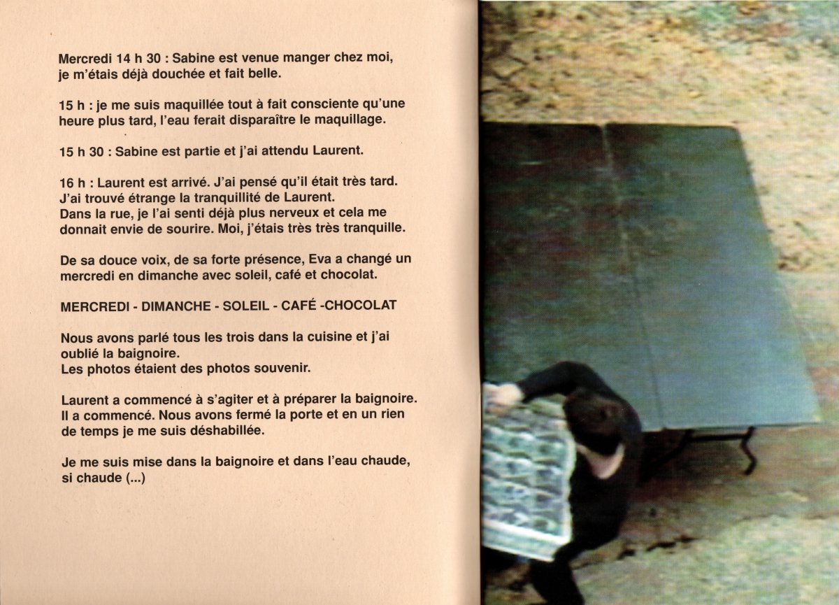 Dimanche 12 octobre 1997. Tout commence par une histoire d’amour ramenée à une simple équation : soit le corps d’une femme (Eva) plongé dans H2O, chez une tierce personne (Eva).