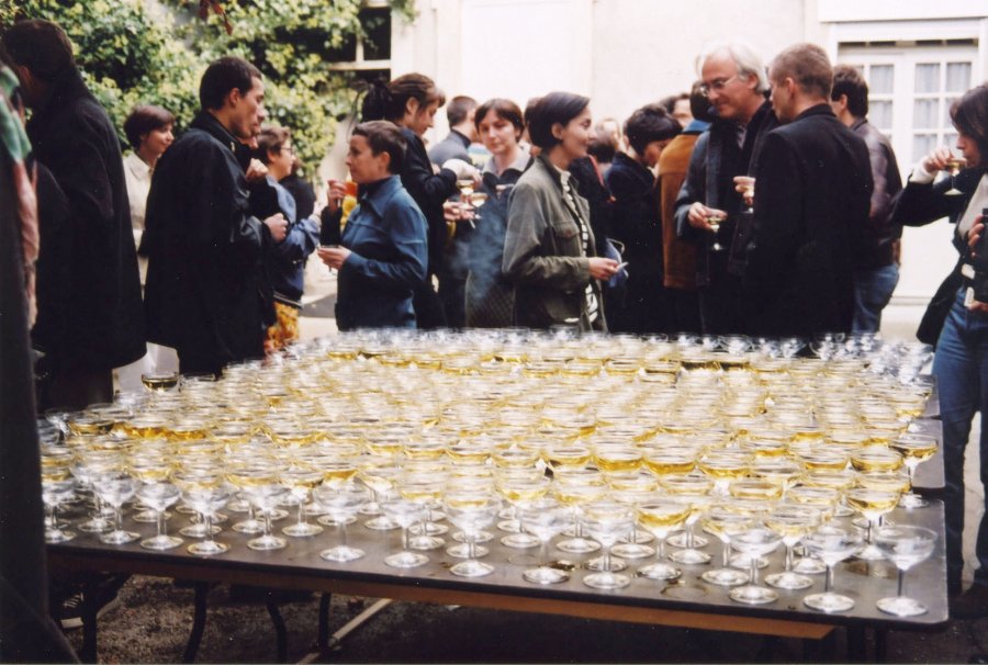 Vue d’en haut, chacun passe pour le figurant d’une partition blanche. On ne prend conscience de son rôle qu’en racontant la soirée une première fois, vécue d’en bas. Personne ne saurait en donner une vision synthétique. Une œuvre, ou le public, déliquescent(e). Certains partent plus tôt. D’autres restent, c’est le Vouvray qui les emporte.