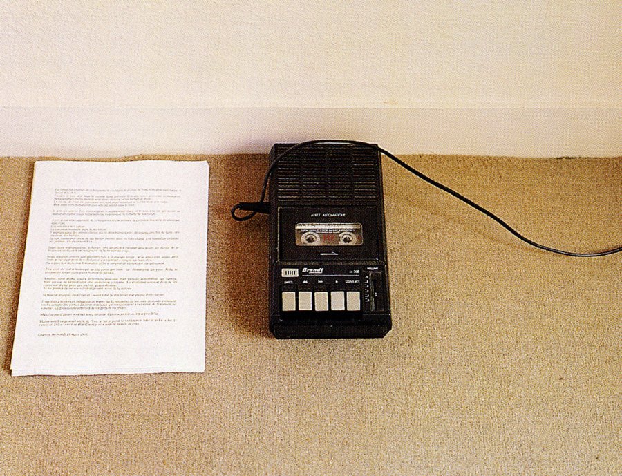 Il est difficile d’imaginer ce que Laurent Moriceau prémédite, de la part que son œuvre, comme on dirait d’un crime, laisse aux mains du hasard. Il semble se satisfaire de toutes les situations, ne pas savoir ce qu’il attend pour se rendre disponible à ce qui arrive… Il fixe le lieu d’une réunion sans ordre du jour, propice à toutes les histoires. En fait, la soirée était réussie à partir du moment où trois personnes répondaient à son invitation, comme la règle qui veut qu’au théâtre il y ait au moins autant de personnes dans la salle que sur scène. Peter Handke a écrit pour le théâtre un spectacle intitulé L’Heure où nous ne savions rien l’un de l’autre. Il s’agit d’indications scéniques, celles que l’auteur intercale généralement entre les dialogues, ici absents. Des personnages traversent presque en continu l’espace d’une place, dans des attitudes plus ou moins précises. Sans qu’il y ait aucune hiérarchie entre eux – tous sont figurants – Handke désigne par son utilisation de l’article défini ou indéfini, le degré d’exactitude qu’il a de la vision du personnage, qui sera aussi celle du spectateur. La dédicace du livre indique par ailleurs « Pour S. (et par exemple la place devant le centre commercial du Mail sur le plateau de Vélizy) ». On peut facilement imaginer que la discussion naissant entre les comédiens et un metteur en scène autour de l’interprétation à donner de chacune des attitudes puisse fournir l’argument d’une pièce en soi.