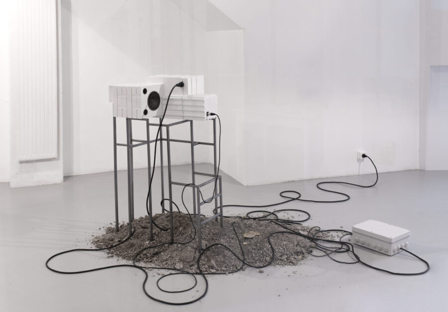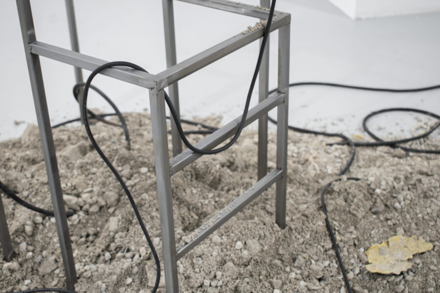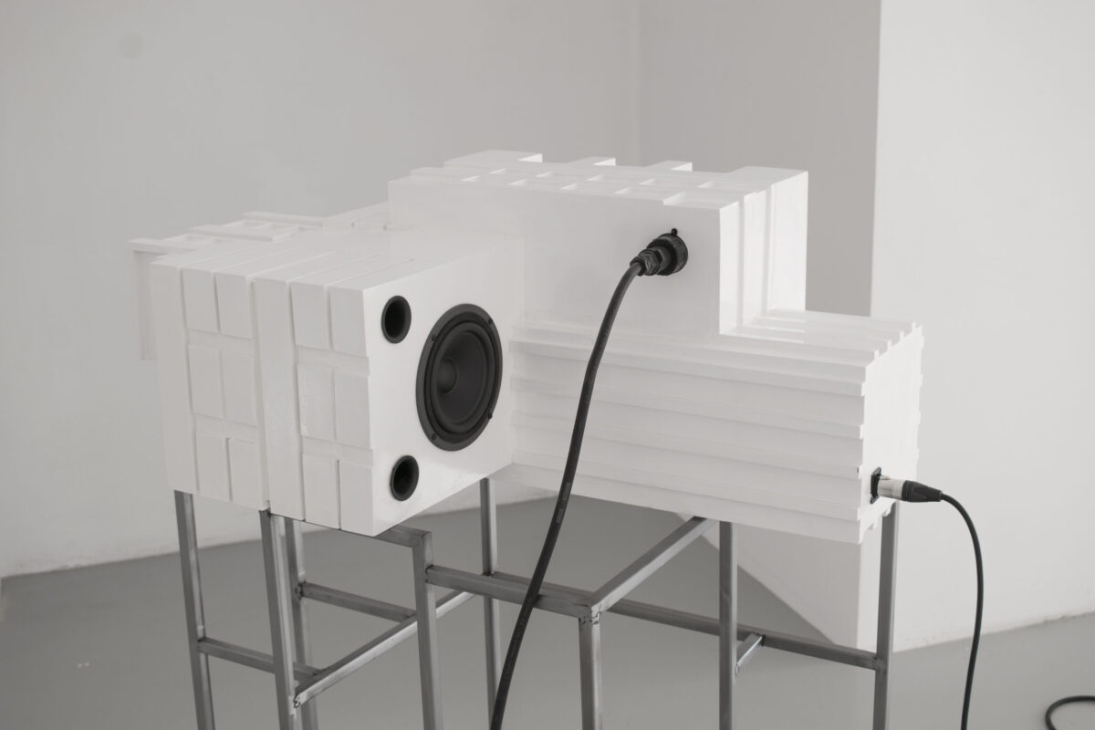 La composition diffusée par l’installation est le fruit d’une étude sonore réalisée au géophone de l’activité de l’un des plus gros chantiers de Loire-Atlantique, celui du futur hôpital de Nantes.