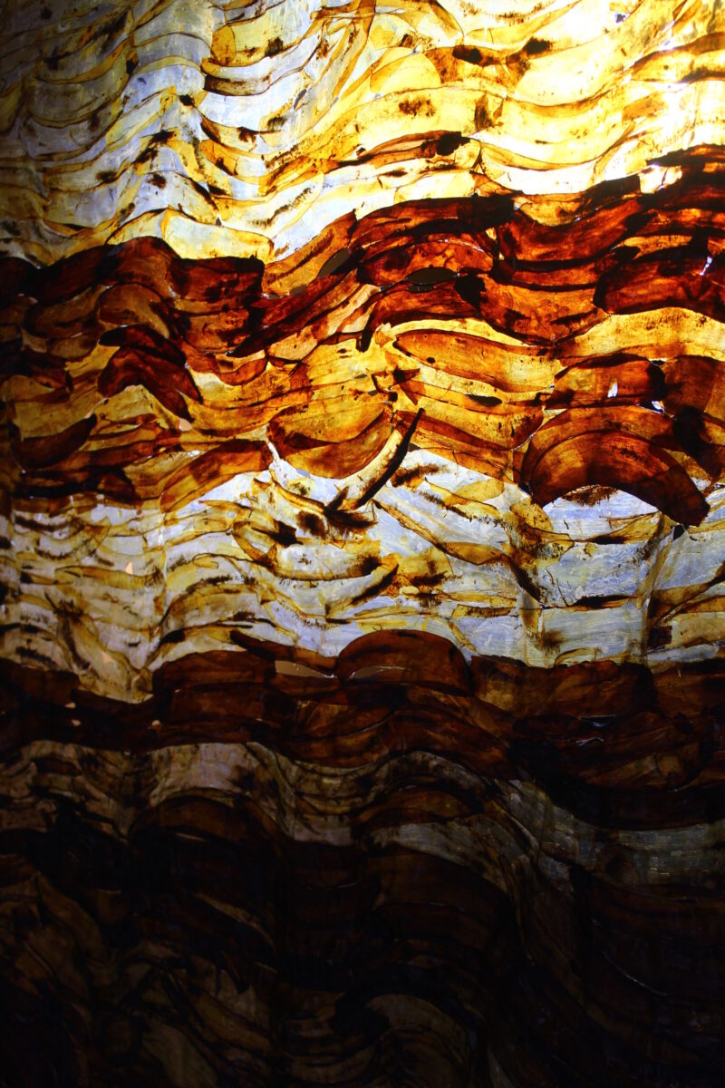 La nature revient en sculptures. Une forêt de racine tressées descends du plafond, à la recherche de ce qui se tisse et crée du lien entre les cultures.