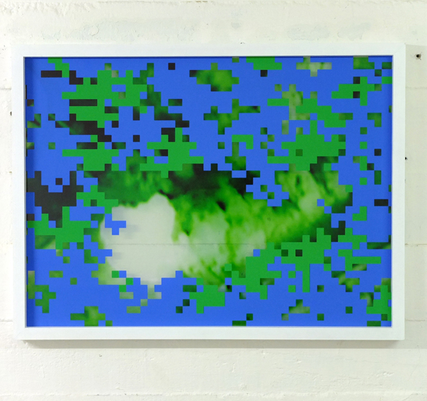 Camouflageimage (2016), image sur support transparent, sérigraphiée (vert et bleu incrustation)