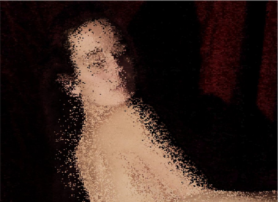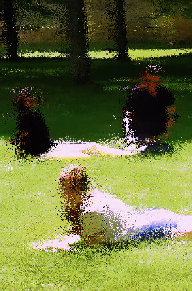 De la même façon que notre mémoire fragmente la représentation d’un souvenir, certaines parties de l’image ont disparu. Bientôt, elles seront recouvertes par un nouvel échantillon de pixels.
