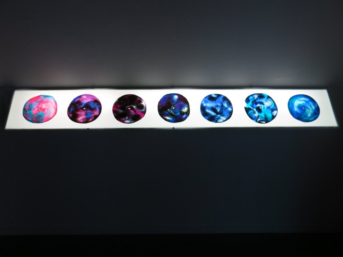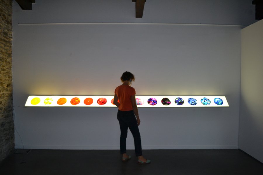 Cette série est apparue, dans une recherche de flux de couleurs et de stratification. La gélatine est ainsi utilisée comme filtre lumineux organique, comme objet de projection.