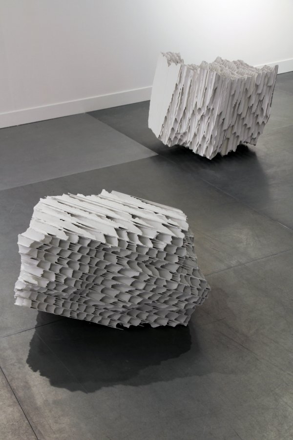 A sort of symbiosis between the apparition of a form and the vibrant use of color may be what relates the works of Geneviève Claisse, Simon Collet, Vincent Mauger, Guillaume Constantin and Benjamin Sabatier. The seeming perfection emanating from their works reveals a common attitude towards the infrastructure of abstract representation in a world saturated with images. The carefully combined forms drawn by Geneviève Claisse and the floating shapes designed by Simon Collet are both subjected to the same rigor, often ruled by complex mathematical combinations. The elements assembled by Vincent Mauger help building sequential structures while the combinations of objects proposed by Guillaume Constantin suggest that another storytelling is possible. And what about the neo-readymades invented by Benjamin Sabatier, which are fully embedded in our contemporary economic context, especially in the mutations the working system is currently undergoing.