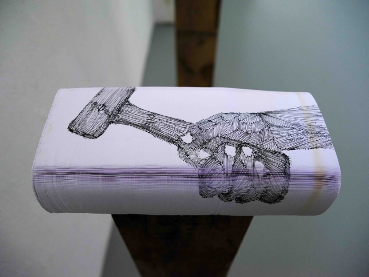 Crayon encre noir, reliure papier