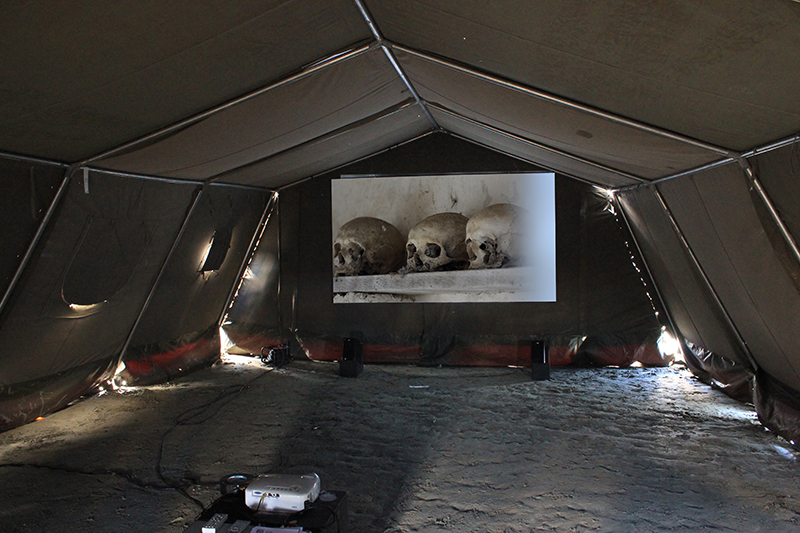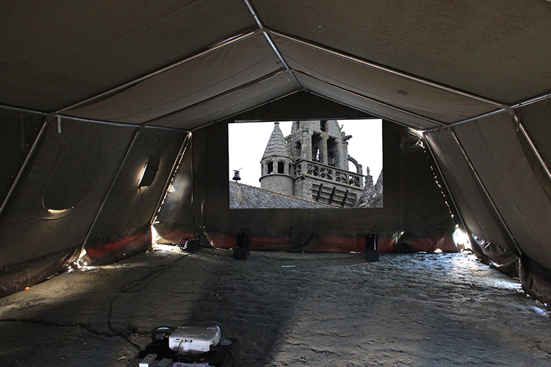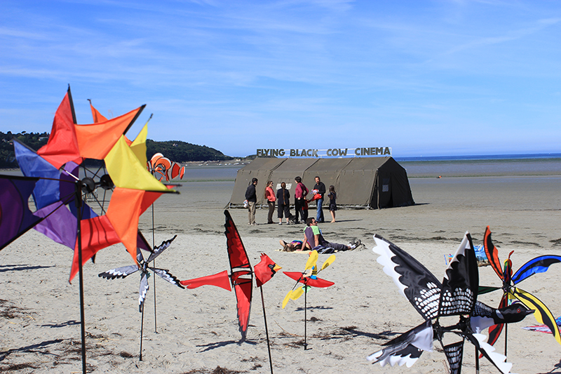 En 2013, David Michael Clarke bénéficie d’une résidence d’artiste au sein du Lycée Félix Le Dantec de Lannion en partenariat avec Itinéraires bis. Le contexte de bord de mer est pour lui l’occasion d’envisager une nouvelle version des Flying Black Cows. Il emprunte alors aux manifestants Mayennais la forme de la tête de vache noire pour en faire des cerfs-volants. Les vaches vont ainsi s’envoler et passer furtivement devant les flèches des églises de style Beaumanoir, dressées dans le ciel trégorrois et sculptées par le vent. Leurs apparitions sont filmées par l’artiste. En octobre de la même année, il participe au festival Vent de Grève, organisé par l’Office de Tourisme Lannion-Trégor-Communauté, pour lequel il conçoit le Flying Black Cow Cinema. Sur la longue plage de Saint-Efflam, il monte une tente marabout de couleur kaki, surmontée d’une enseigne qui accueille en son sein la diffusion de la vidéo qu’il a réalisée durant l’été dans le Trégor.