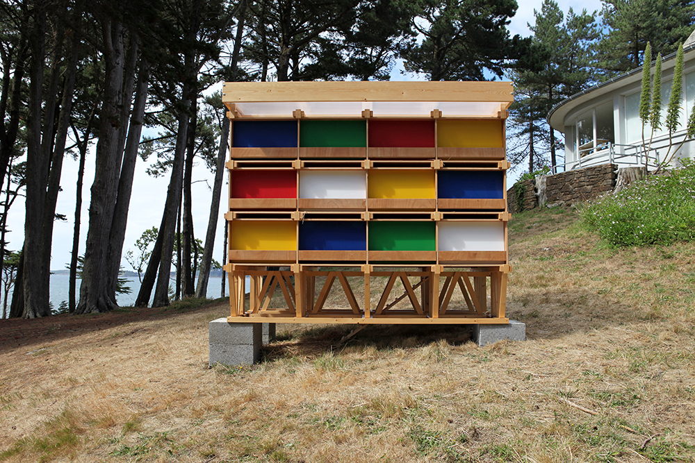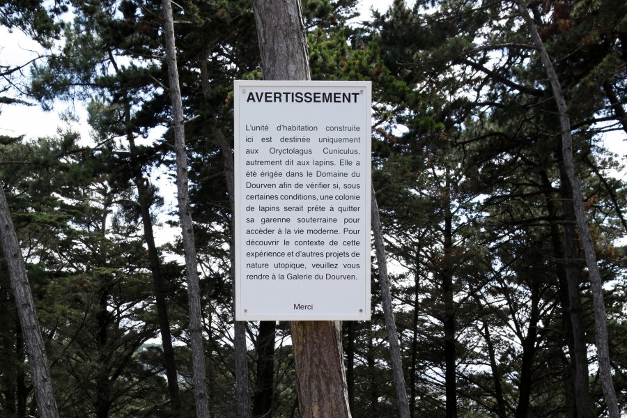 Si les promeneurs de chiens, les pêcheurs et les lapins sont toujours présents dans ce deuxième volet, l’artiste rend un hommage tout particulier à l’architecte breton Roger Le Flanchec. Profondément inspiré par l’oeuvre de Le Corbusier, Roger Le Flanchec est connu pour avoir construit la résidence Hélios à Trébeurden, seul exemple d’unité d’habitation réalisé en France sur le modèle de la cité radieuse, à l’exception de celles réalisées par Le Corbusier lui-même. Dans cette période historique des années 30, les luttes ouvrières obtiennent cette utopie que sont les congés payés et qui sont à l’origine des pratiques balnéaires que nous connaissons aujourd’hui tant du point de vue architectural que comportemental. [extrait d’un texte : Didier Lamandé]