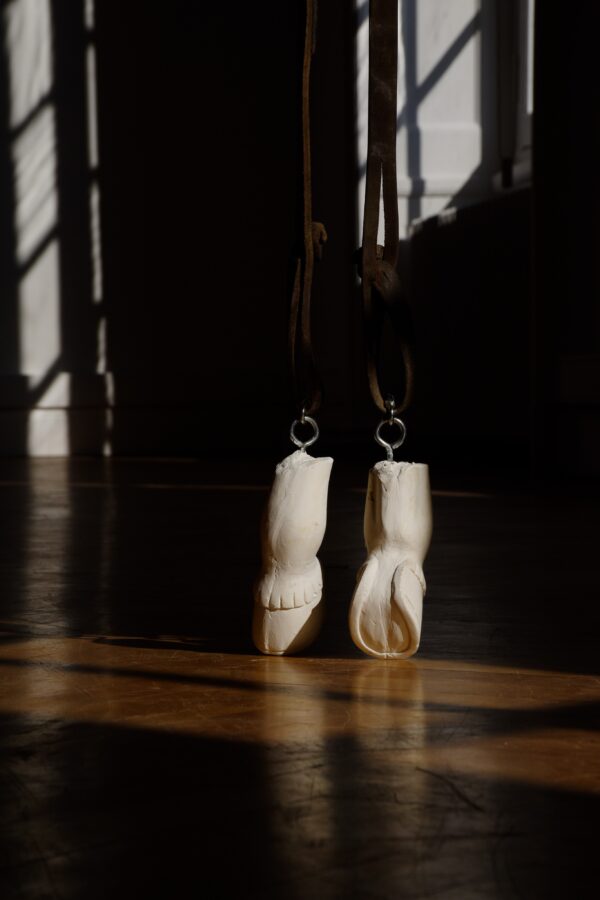 ← Anne Lebréquer 1/3 Anne Lebréquer, «Foulée», 2023, cuir, plâtre, acier zingué, photographie : © Élise Navarro Anne Lebréquer, «Foulée», 2023, cuir, fil polyester, plâtre, acier zingué, photographie : © Mathis Pierrot Anne Lebréquer, «Foulée», 2023, cuir, plâtre, acier zingué, photographie : © Mathis Pierrot Foulée, 2023
