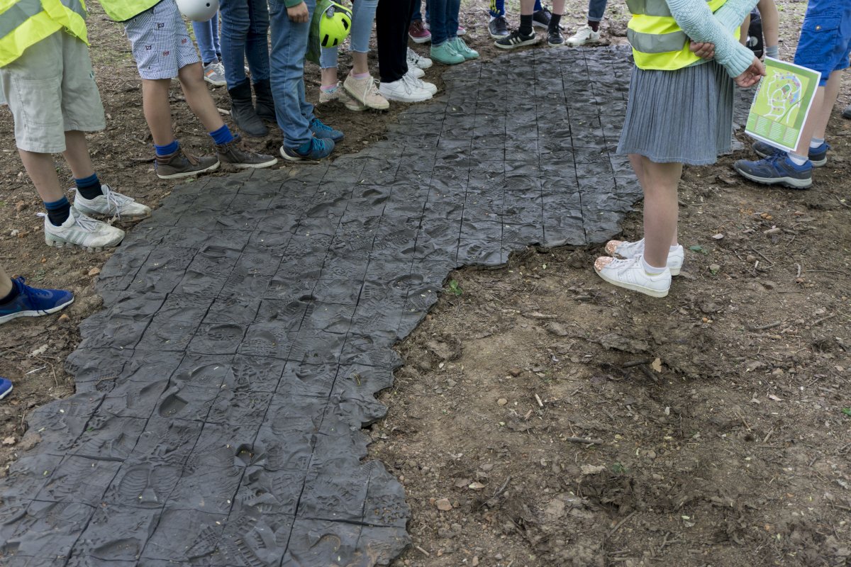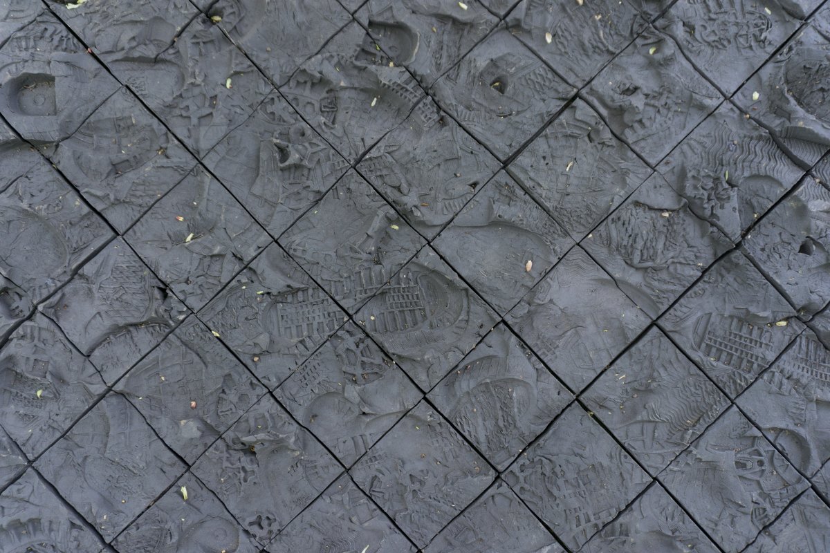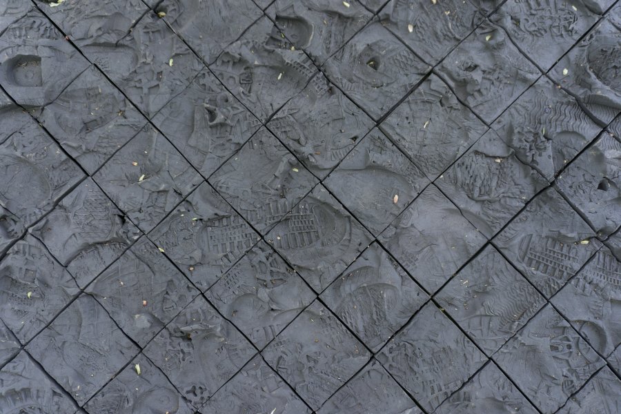 Napper forme une flaque solide. Une nappe de terre céramique à carreaux noirs. 250 kg de grès noir sont travaillés et labourés par mes soins.