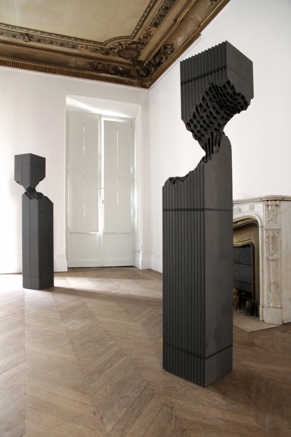 Dans un appartement privé, un hôtel particulier du XVIIe, rue des Chartrons, et siège du club des Parisiens de Bordeaux, l’artiste présentera de nouvelles sculptures en brique et en lames de pvc ainsi qu’une série de dessins où la feuille de papier est considérée comme une trame que l’artiste vient modifier, déformer, redessiner.