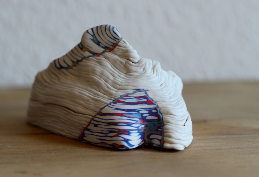 Morceaux de mémoire aux formes minérales, les fragments témoignent de la rencontre entre la couleur et le blanc, le vide et le plein, la texture et la surface.