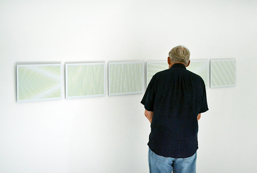 « Les Fréquences d’apparition, série de 10 poèmes visuels réalisés en 2014 lors d’une résidence artistique dans les Cévennes, sont des créations numériques présentées ici pour la première fois. Lors de ce séjour, l’artiste n’a de cesse de marcher, jour et nuit, pour se délester de ce qui conditionnait alors son existence. Les poèmes ont été rédigés lors de moments de pause plus méditatifs. Dans ces textes typographiés, l’écriture ne vient plus servir une volonté d’expression ni de communication, s’éloignant en cela de son rôle initial, mais devient formes visuelles dont la vibration poétique traduit une multiplicité de possible. »
