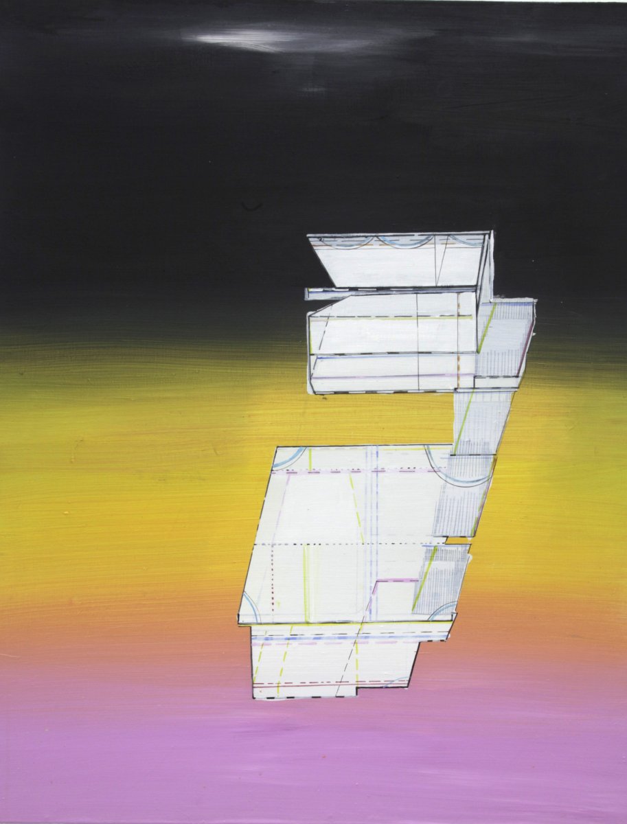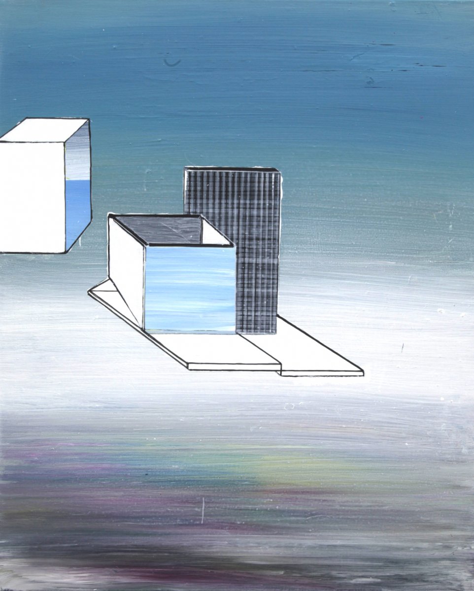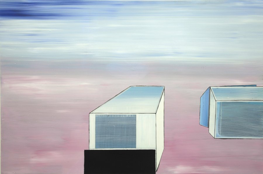 François Brunet : Ce sont des tableaux aux formats différents les uns des autres où s’hybrident des notions de paysage, de constructions, d’histoire de la peinture et d’interrogations portées à nos modes de représentation.
