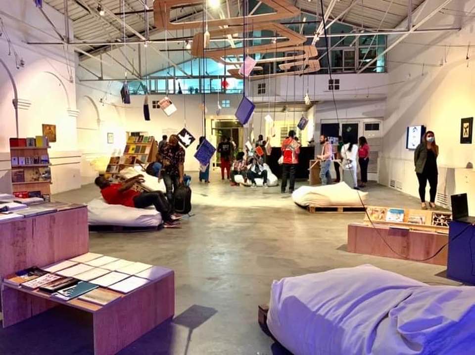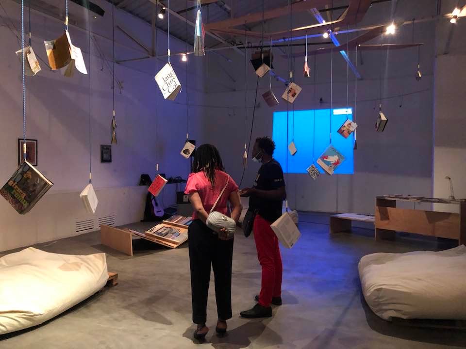 Dans le cadre de l’hommage à Goddy Leye Exit Douala//Yaoundé organisé par l’IFC.Exposition / Espace de lecture et de contemplation autour de la bibliothèque de Goddy Leye parti bien trop tôt, 10 ans déja…