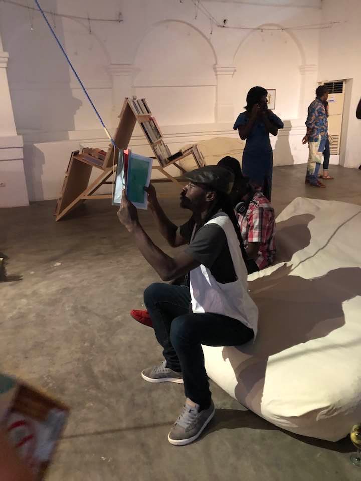 Cet espace de réflexion et de rencontre autour du livre propose une immersion dans cette magnifique collection qui nourissait l’artiste et les artistes de passage à Art Bakery, lieu d’art emblematique à Bonendale. Il proposera jusqu’à fin Janvier differents temps d’échanges, de lectures, de performances autour du livre et de Goddy.