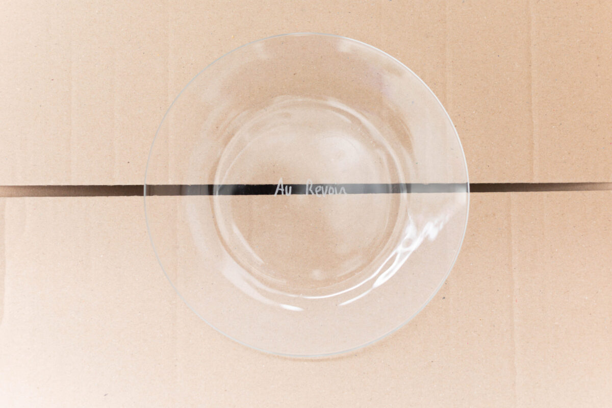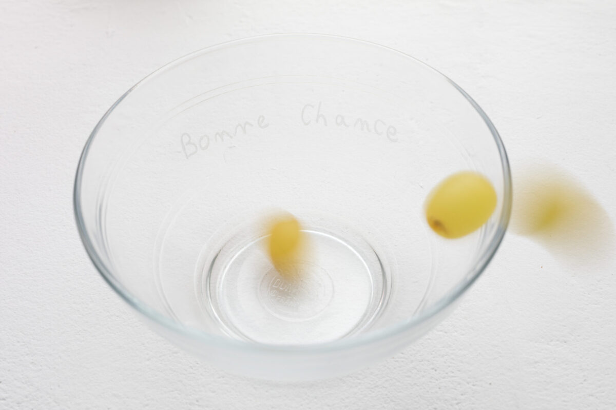 Dans Happy Hours, la nourriture, les boissons et les traces du vernissage font partie intégrante de l’exposition : le public peut se servir directement dans les gobelets présents, déguster le vin ou les chips disposés dans des bols gravés et participer ainsi à cette mise en scène de la fête. Chaque geste et chaque objet deviennent ici un moyen de jouer avec les règles et de repenser nos rituels de départ.
