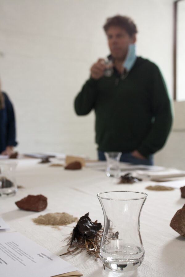 Durant ce mois d’immersion au Studio, j’ai pu développer des recherches et expérimentations de manières complémentaires, à la fois en cuisine et en atelier. À l’occasion de ma sortie de résidence, j’ai présenté mon travail lors d’un temps de dégustation autour de ces trois premières Histoires Comestibles, dans l’ancien atelier d’Olivier Strebelle.