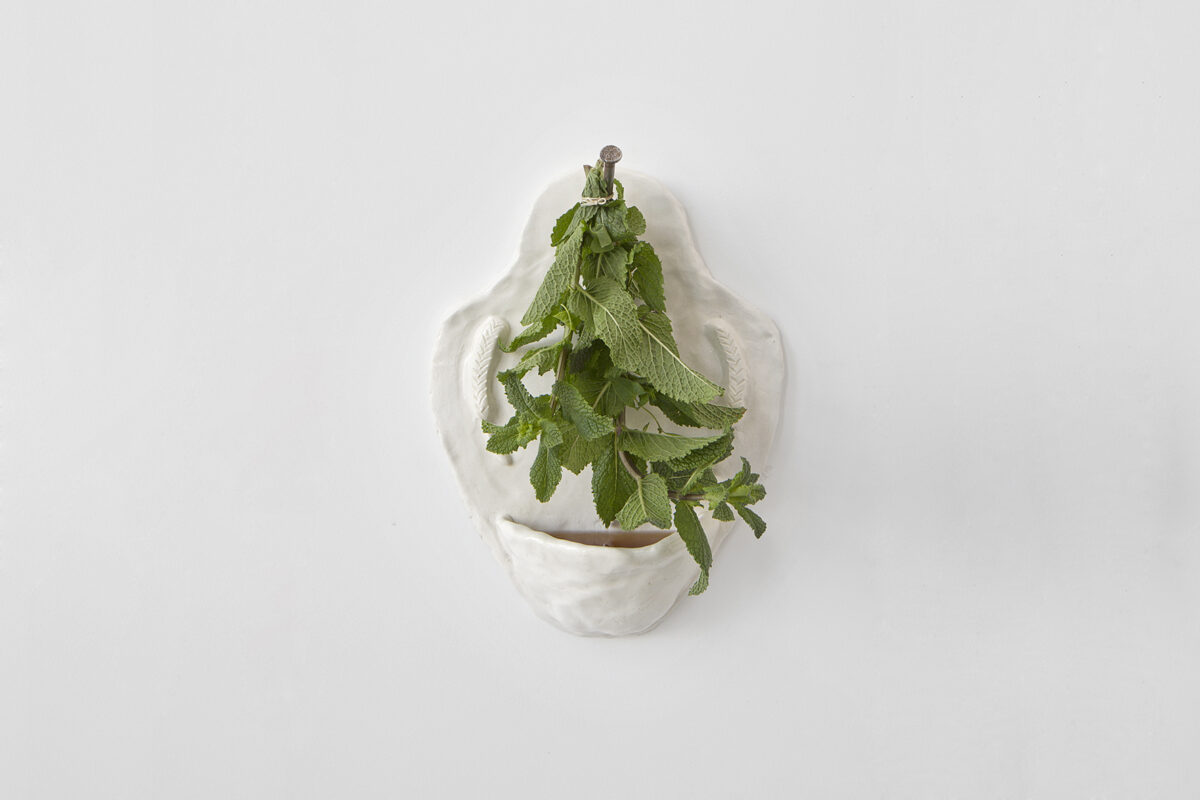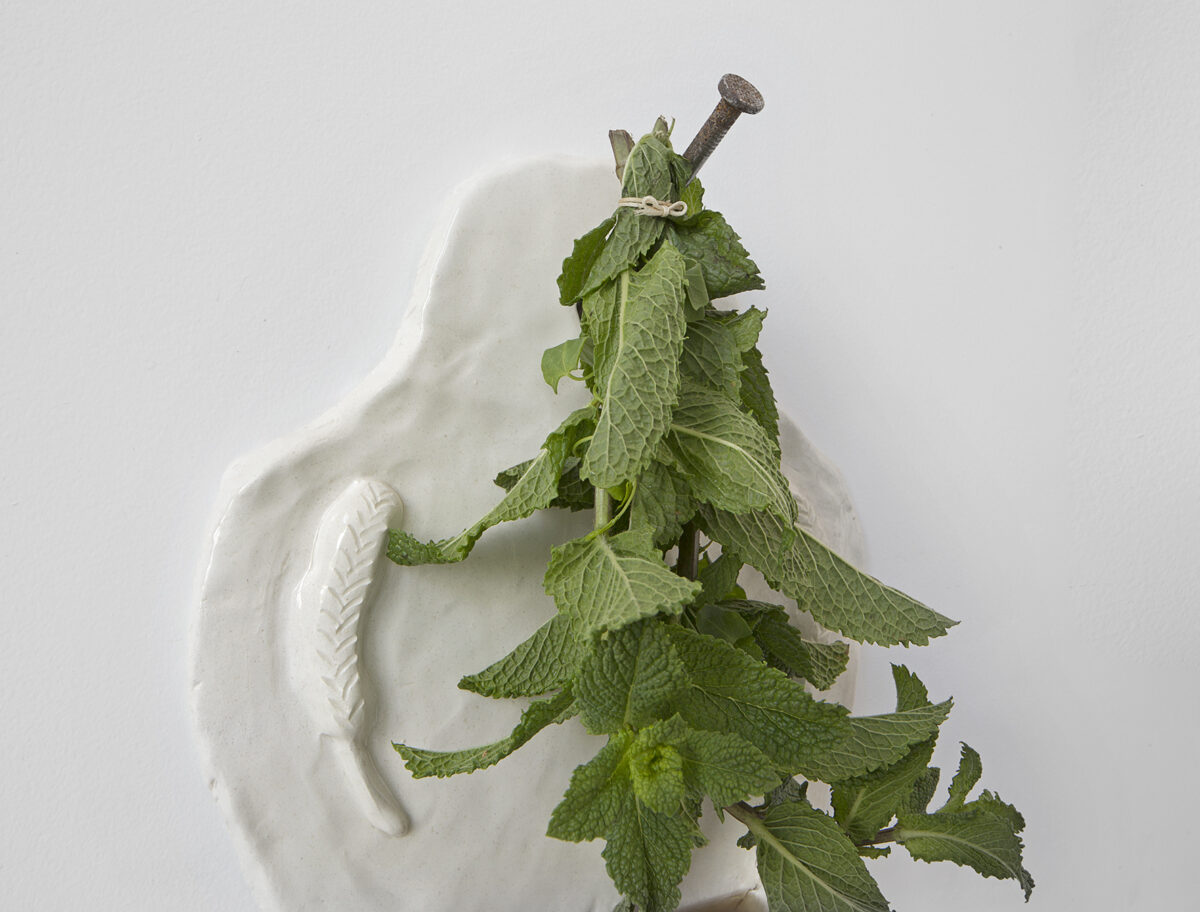 Faïence émaillé, clou, eau-de-vie, bouquet de menthe, sucre, glaçons Millefeuilles Nantes sur une invitation de Martin & Youle exposition "Make it last forever"
