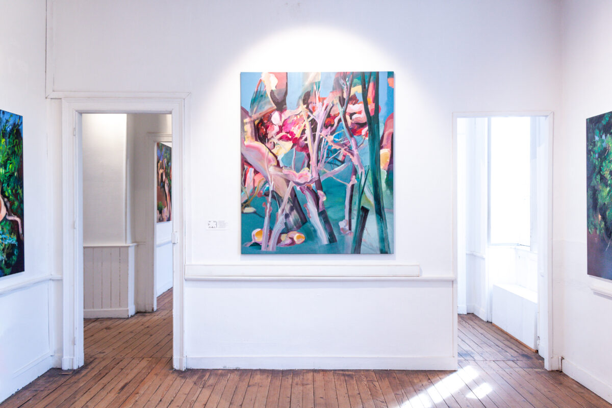Tous ces aspects imprègnent la fascination d’Alice Suret-Canale pour ce motif persistant dans son œuvre. Ces paysages font en outre écho à la qualité de ses surfaces picturales, traversées de brillances et de petites coulures, résultat des embus d’huile.