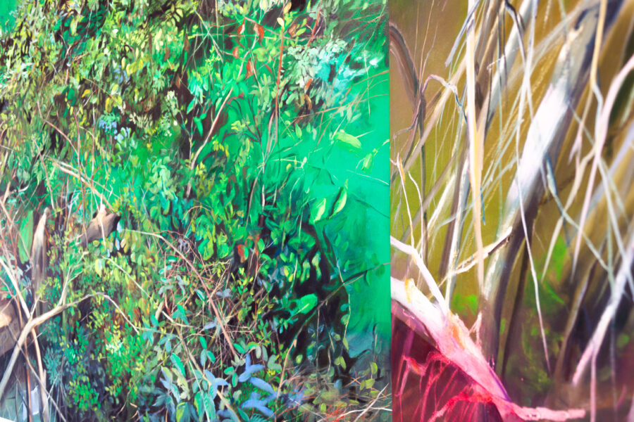 Humides est un projet de peinture ancré en territoire ligérien, depuis les marais bretons vendéens jusqu’aux basses vallées angevines, qui se conclura par la constitution d’un corpus de formats monumentaux. Après une première apparition en gestation au Rayon Vert, cette série sera exposée du 20 juin au 24 août 2025 à l’Abbaye Saint-Florent-le-Vieil puis du 20 septembre au 7 décembre au MAT à la Chapelle des Ursulines.