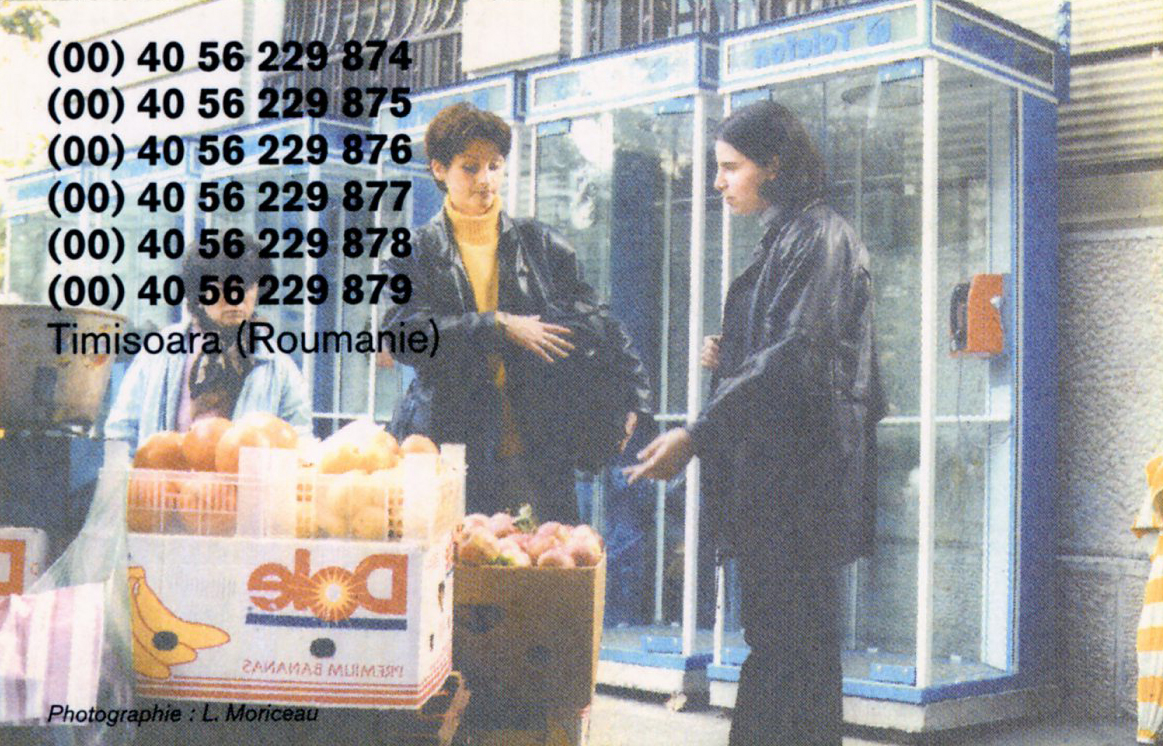 Les cabines publiques sont généralement des lieux émetteurs. Laurent Moriceau opère ici un déplacement intéressant en mettant l’accent sur leur nature secondaire : elles sont aussi des lieux de réception. Les numéros d’appel de ces cabines deviennent alors des représentations du désir de celui qui les compose. Extase incongrue à l’écoute d’une chaude voix roumaine non identifiée: c’est possible, car l’œuvre est une proposition. Elle se présente comme un interstice social dans lequel une expérience de communication neuve s’offre à nous.