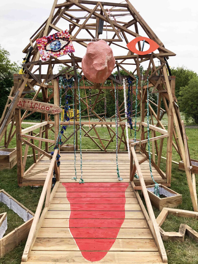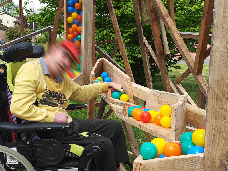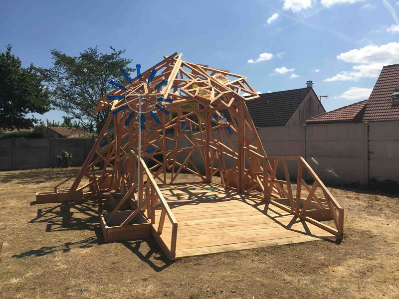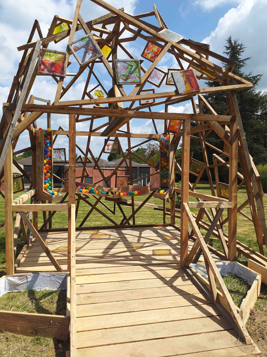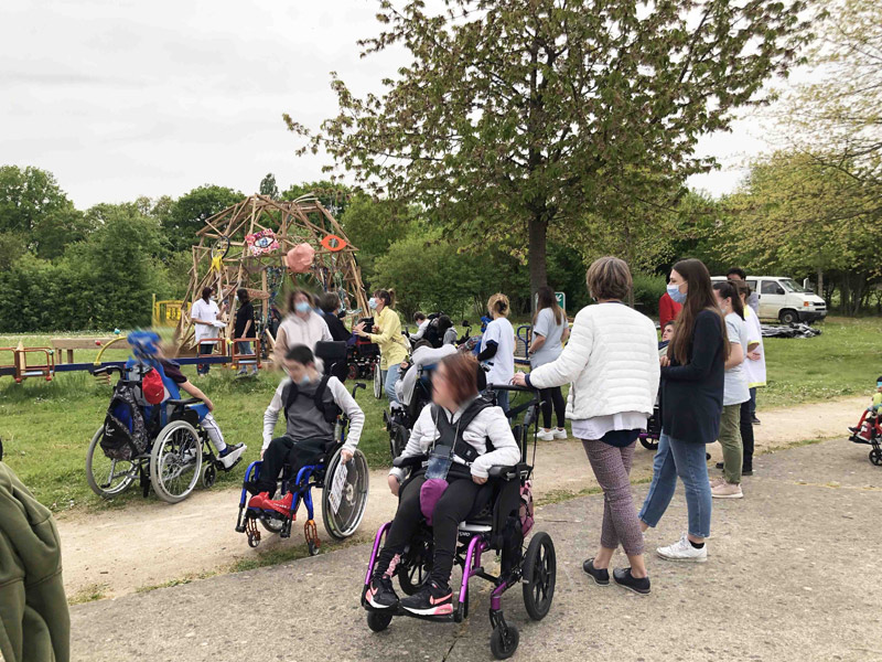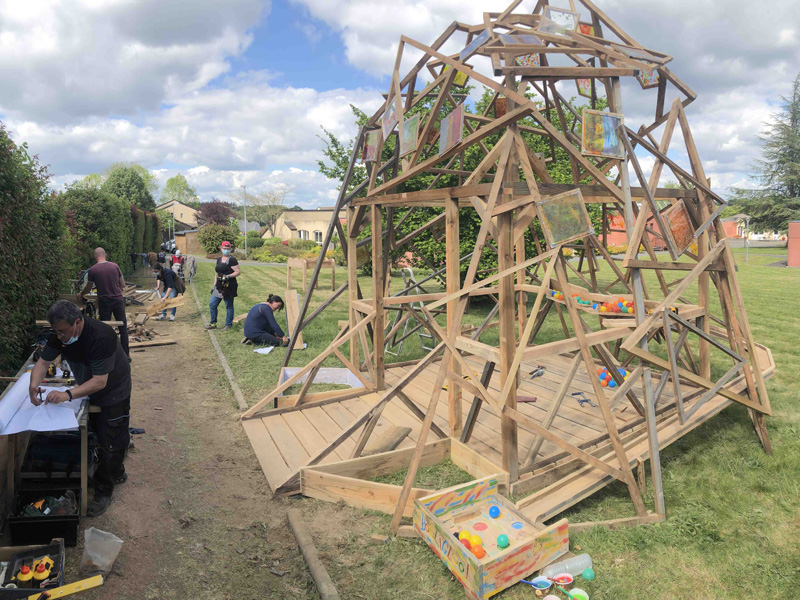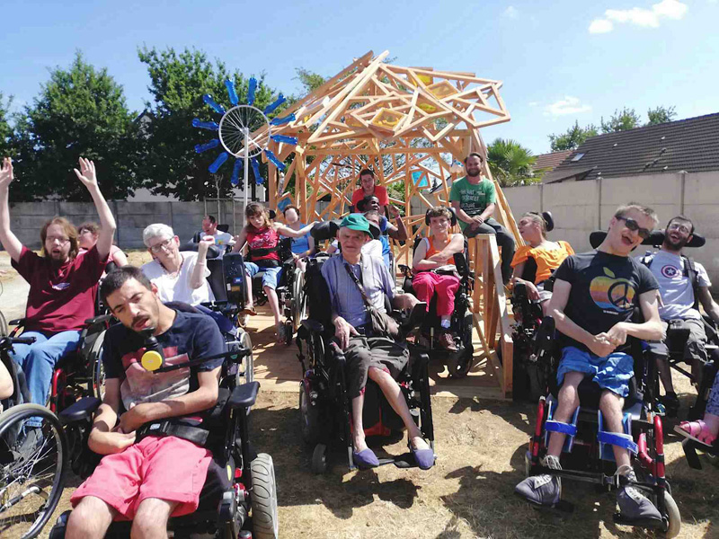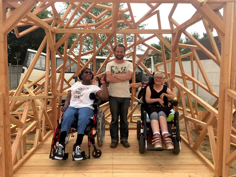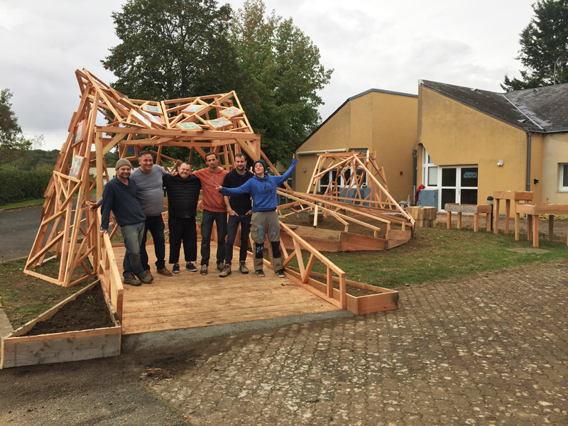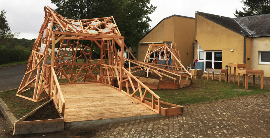 Création de 5 structures extérieures pensées et dessinées pour et avec les résidents et encadrants des 5 centres ADIMC de la Sarthe, centres pour résidents porteur d’un handicap moteur et/ou cérébral. Créations de 2019 à 2022.