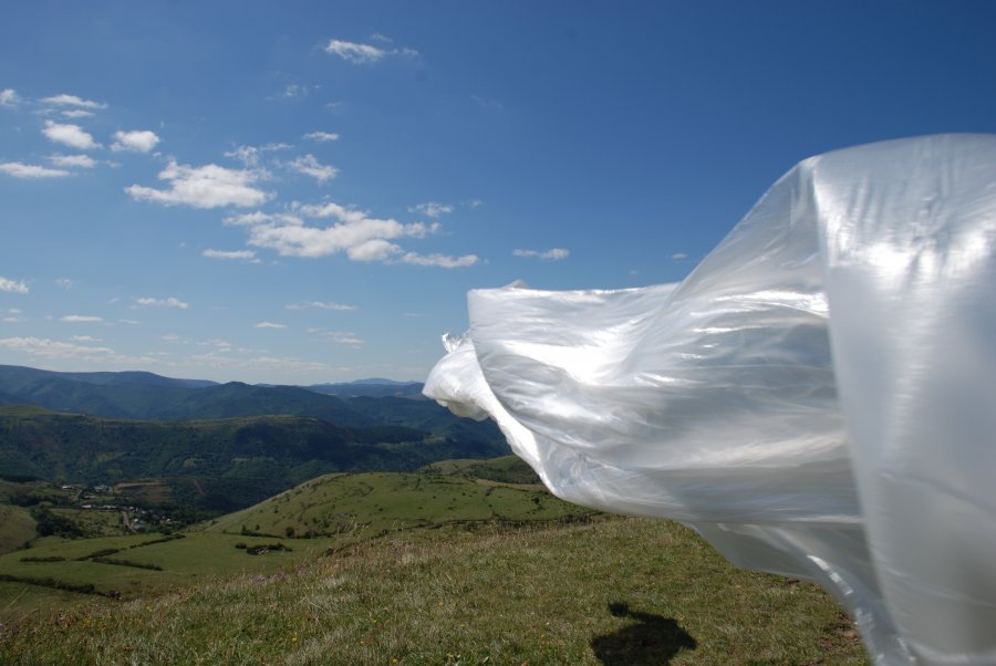 Le Mont Lozère étant loin de tout, j’ai choisi de travailler avec de la bâche de protection de chantier, légère et facile à transporter dans un sac à dos.
