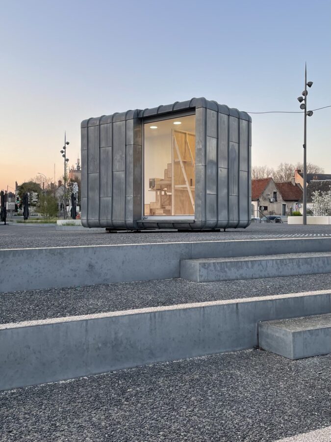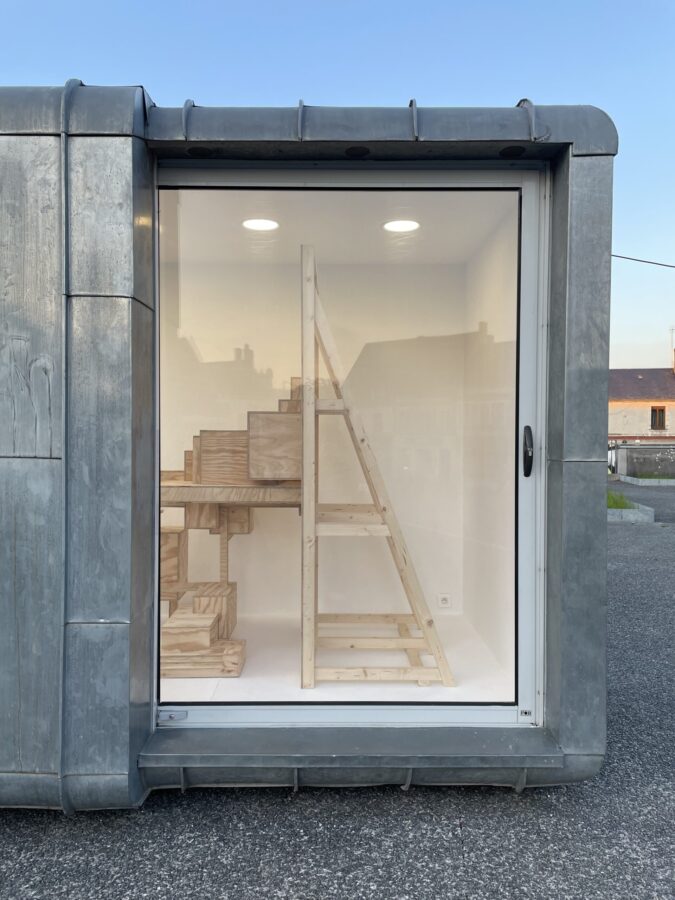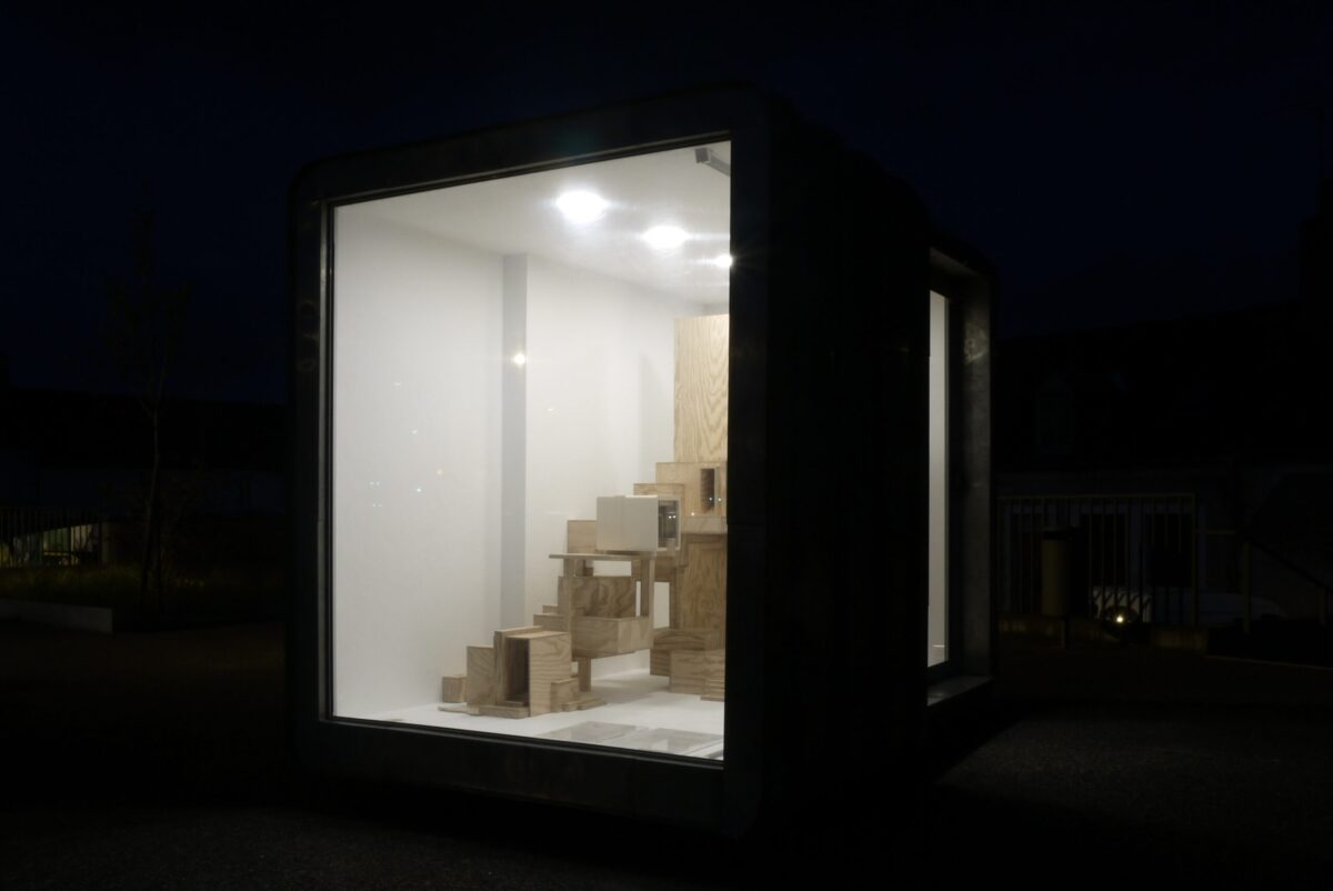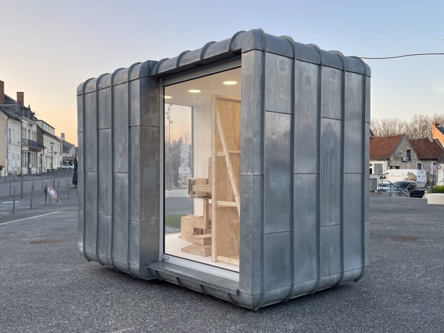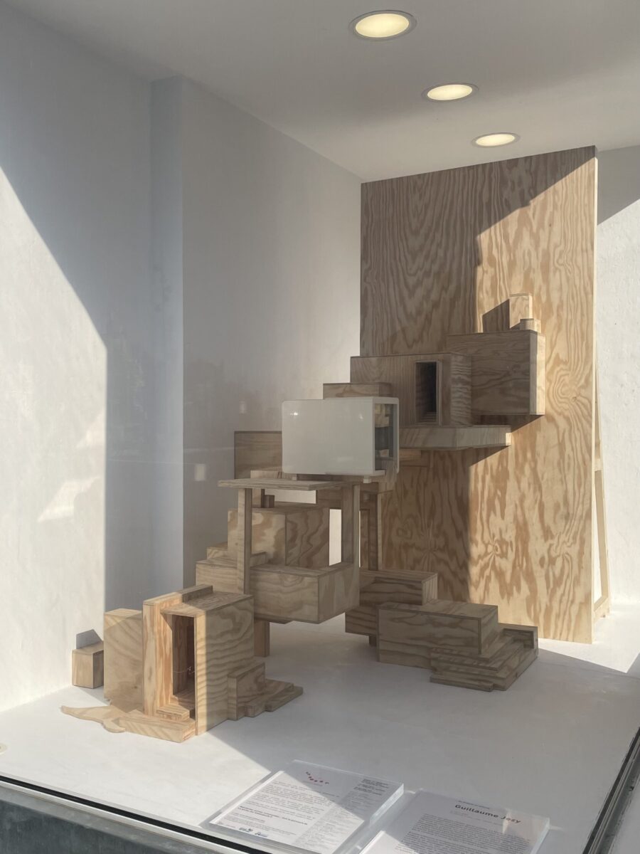 Guillaume Jezy, «In vitro (la borne)», 2026, bois, carton, plexiglas, La borne (POCTB), Mehun-sur-Yèvre, photographie : Guillaume Jezy