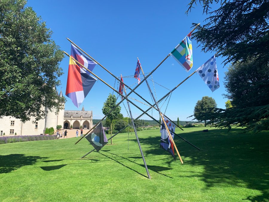 À proximité du château d’Amboise, Vincent Mauger déploie La bataille des avant-gardes. Cette œuvre sculpturale monumentale annonce la couleur. Positionnée sur les pelouses, la sculpture campe les joutes esthétiques qui animent les mouvements artistiques d’avant- garde. Sa structure complexe ainsi que les drapeaux qu’elle arbore incarnent les alliances et les ruptures qui nourrissent affrontements et querelles entre comme au sein des groupes amis ou rivaux…