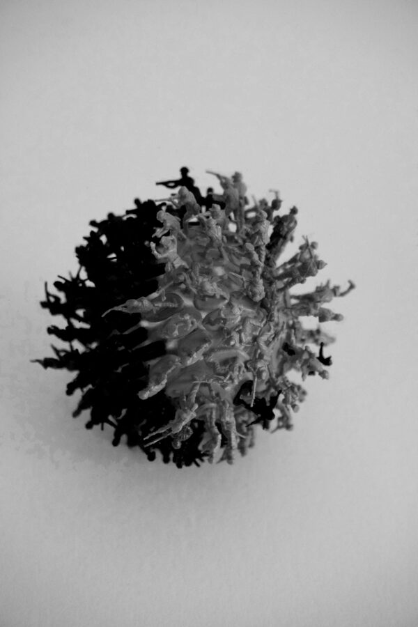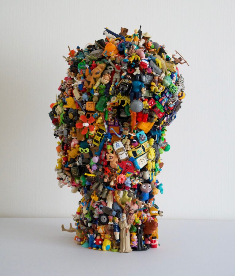 Jouets Club could fit along the same lines as Particules Elémentaires, with the same design to experiment with a form of sculpture, with little toys from surprise Kinder eggs that combine various elements and tell stories. As in Particules élémentaires, the poetry of the world, its joy and sadly its excesses are part and parcel of the subjects.