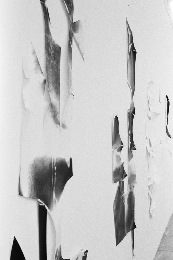 Mais l’importance de cette expérience fondatrice pour Laurent Moriceau réside moins dans l’esthétique de l’image (sa qualité importe peu) que du côté de la dynamique du processus : l’artiste esquisse, par papier interposé, une caresse furtive sur la peau du modèle en mettant en œuvre la technique primitive du photogramme. Ensuite, la nécessité de l’existence physique de l’image s’est éloignée et a disparu même, au profit de la seule utilisation du papier émulsionné, vierge.