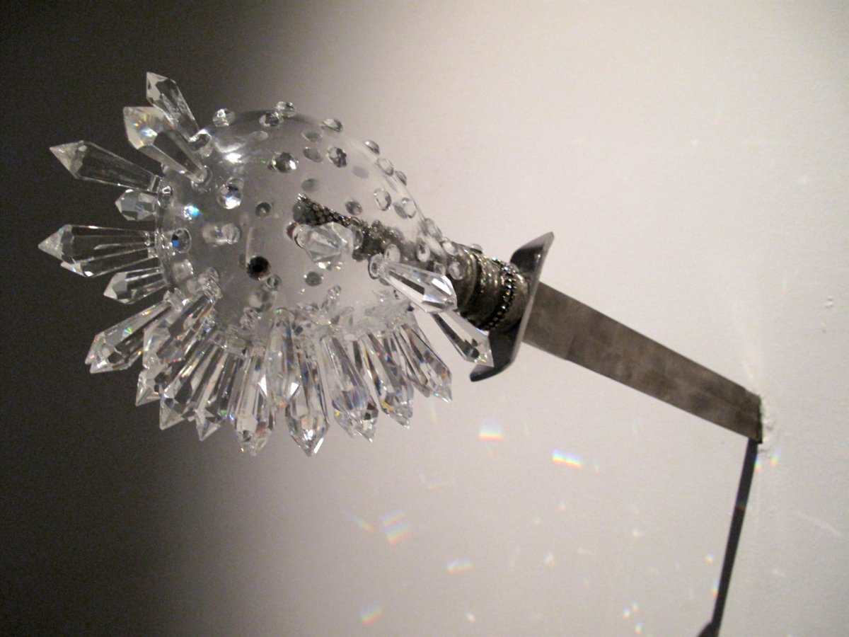 Techniques mixtes -dague de chasse, verre soufflé, perles de cristal (d’un chandelier portugais début XXème) 60 × 20 cm Zamek Culture Center Poznan (PL) Victory obsessed, exposition collective