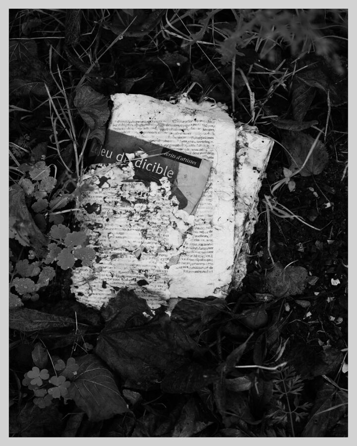 Choisir un lieu, y déposer Le jeu du dicible de Kosuth et laisser l’ouvrage se désintégrer pour qu’il devienne humus.