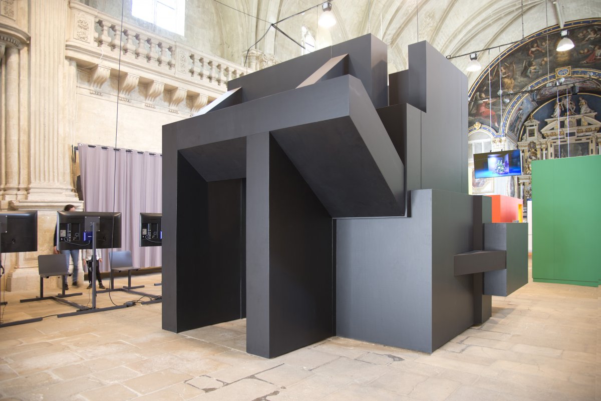 Pierre Besson, « La Maison du Dé», 2021, CP peuplier, 333 x 329 x 447 cm, L ‘atelier des mémoires vives et imaginaires, Art, informatique et cybernétique, Le Miroir, Poitiers, 2021, photographie : P.Besson