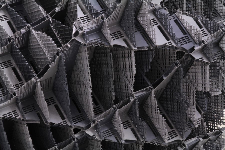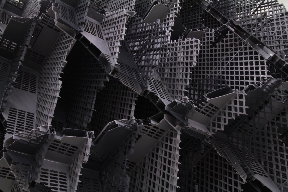 J.D. : Casiers à Bouteilles, caisses plastiques, polystyrènes, tubes, vous utilisez volontiers des matériaux non nobles. Les choisissez-vous pour leur matière ou leur capacité à constituer une trame répétitive ?