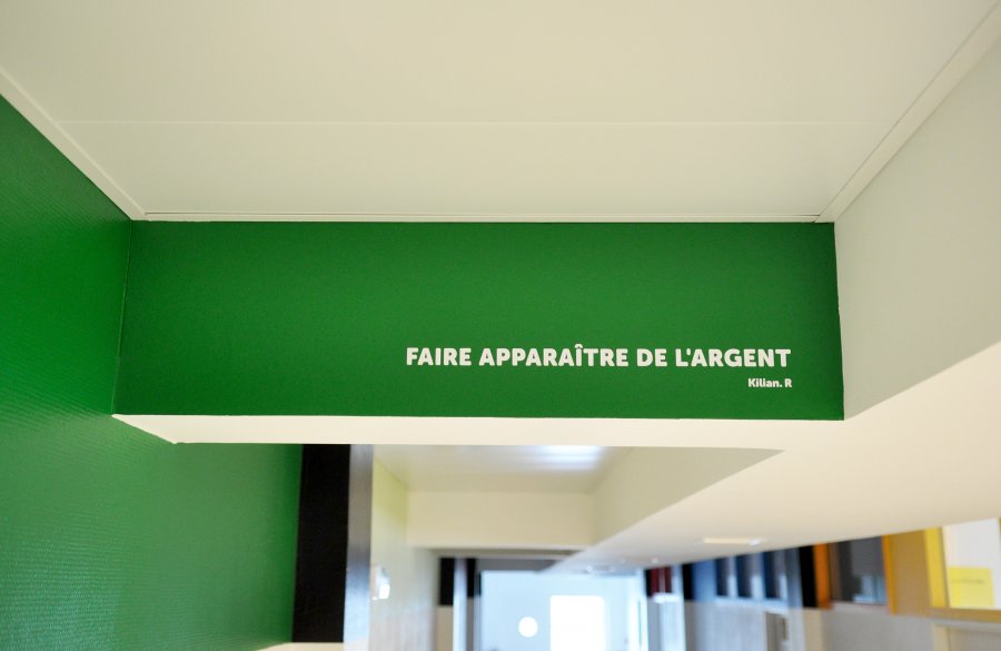 Deux textes de Pierre Giquel écrits pour le projet sont présentés dans les cages d’escalier de l’école :