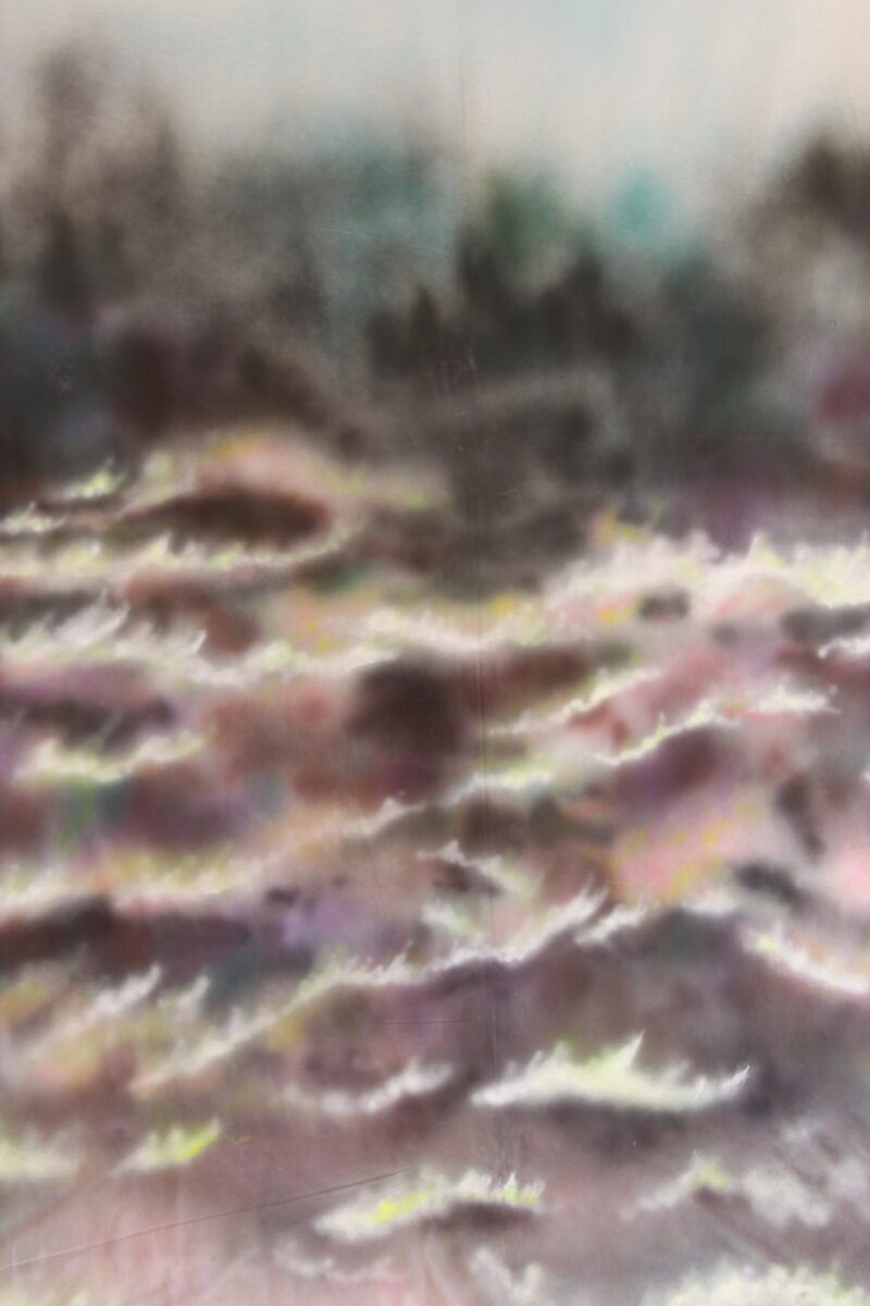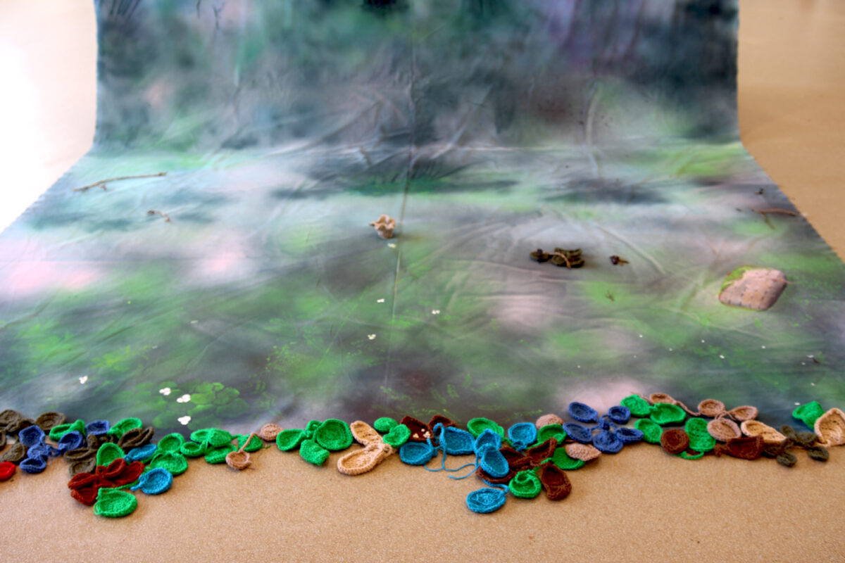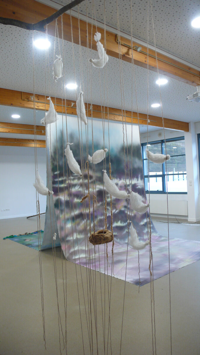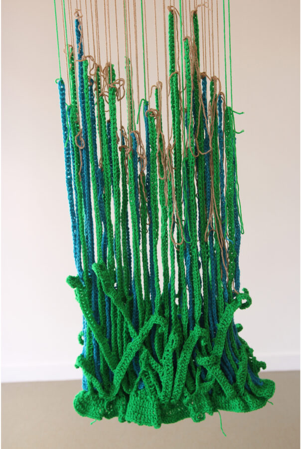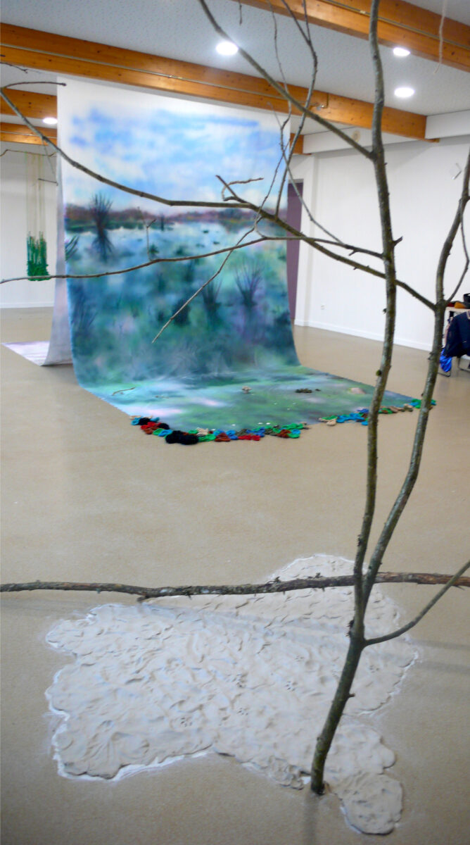 La nymphe est l’insecte en transformation qui construit son habitat (la loge) pour se développer. C’est aussi Circé, sorcière-tisseuse mythique, qui pour se défendre transforme par des philtres, les hommes en animaux et reprend sa vie en main au contact de la nature. Sa liberté et son indépendance symbolisent le l’écoféminisme contemporain. Des installations immersives inspirées de l’histoire des marais du Grand-Hazé, de la fragile tourbière, croisent nature et nouvelle mythologie féminine.