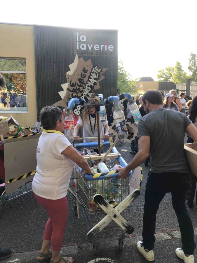 Ce projet participatif propose donc de créer une synergie autour de cette grande thématique de la consommation, une union des élèves, autant autour de la réflexion et de la conception des caddies, que dans la relation avec les artistes du projet depuis les ateliers jusqu’à la déambulation finale devant les publics.