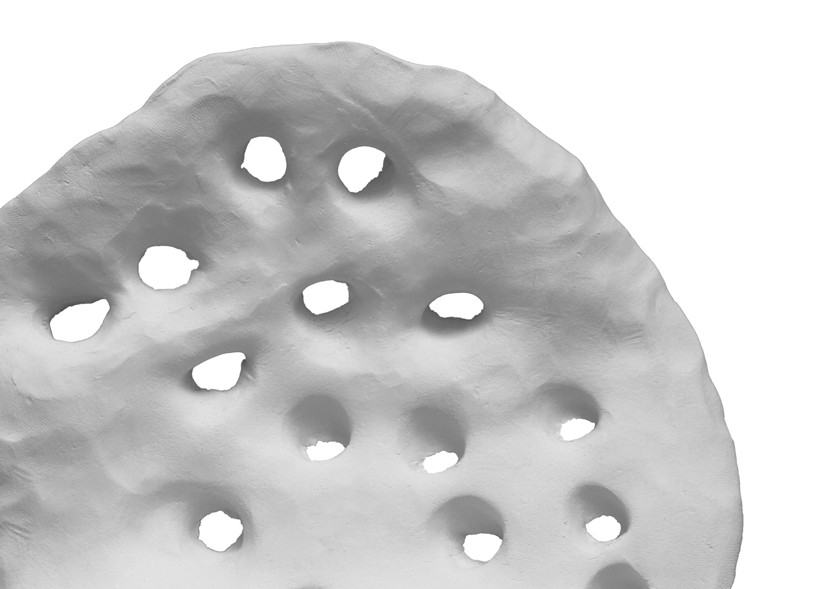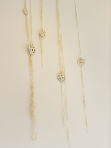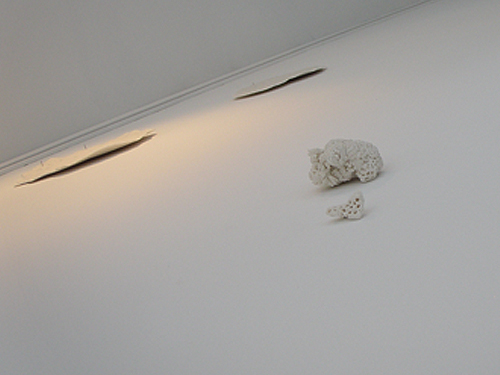 Les éléments créés pour cette exposition joueront des analogies possibles entre végétal et animal, organique et minéral. Par leur nature et leur assemblage, les limites entre support et sculptures, dessin et volume se troublent. Les contours d’un rivage se forment par bribes, au gré des formes, des lignes, des fragments qui composent cet univers lacunaire.